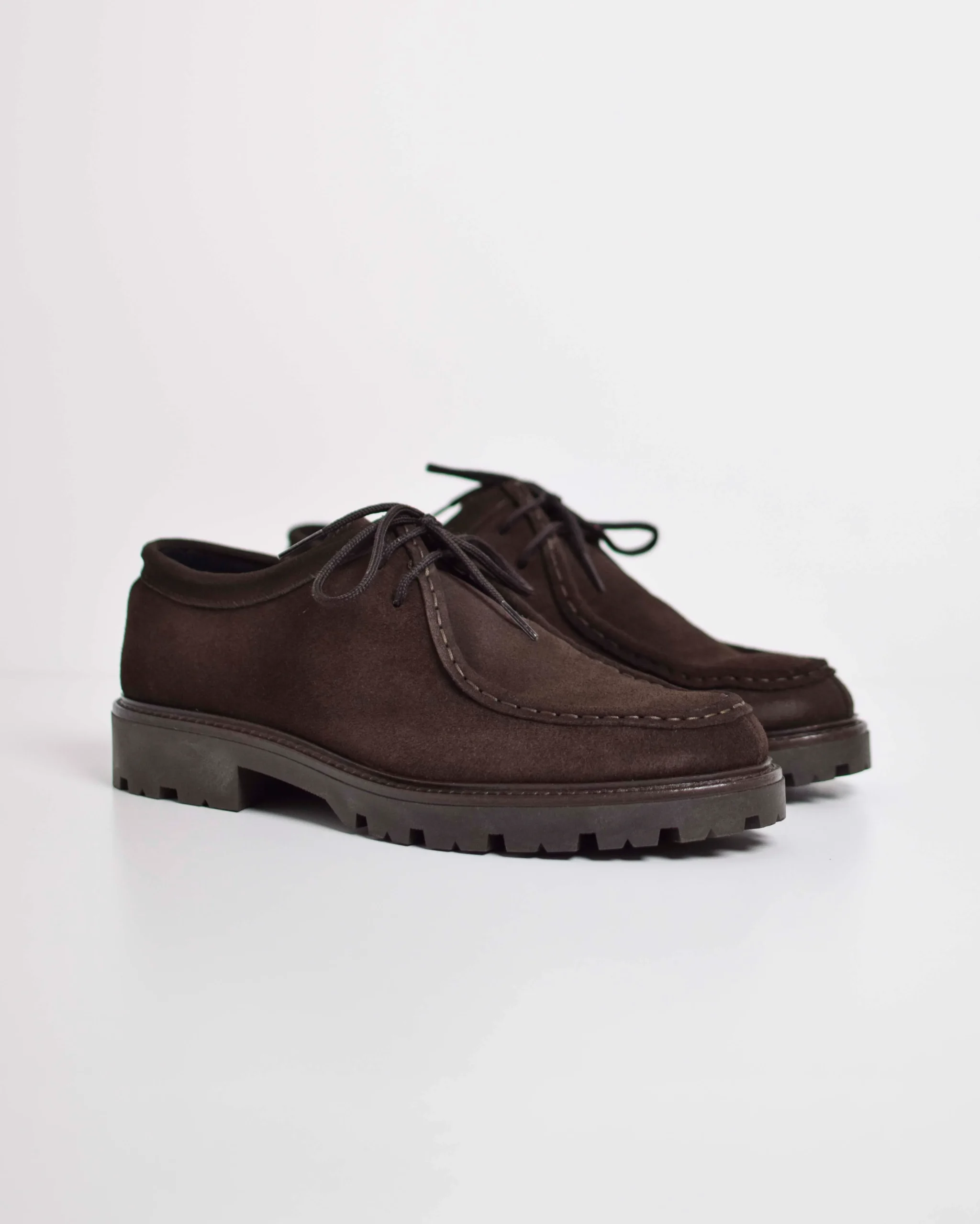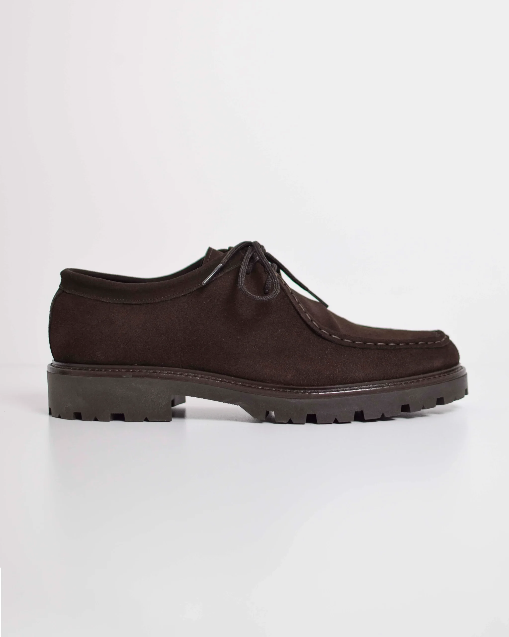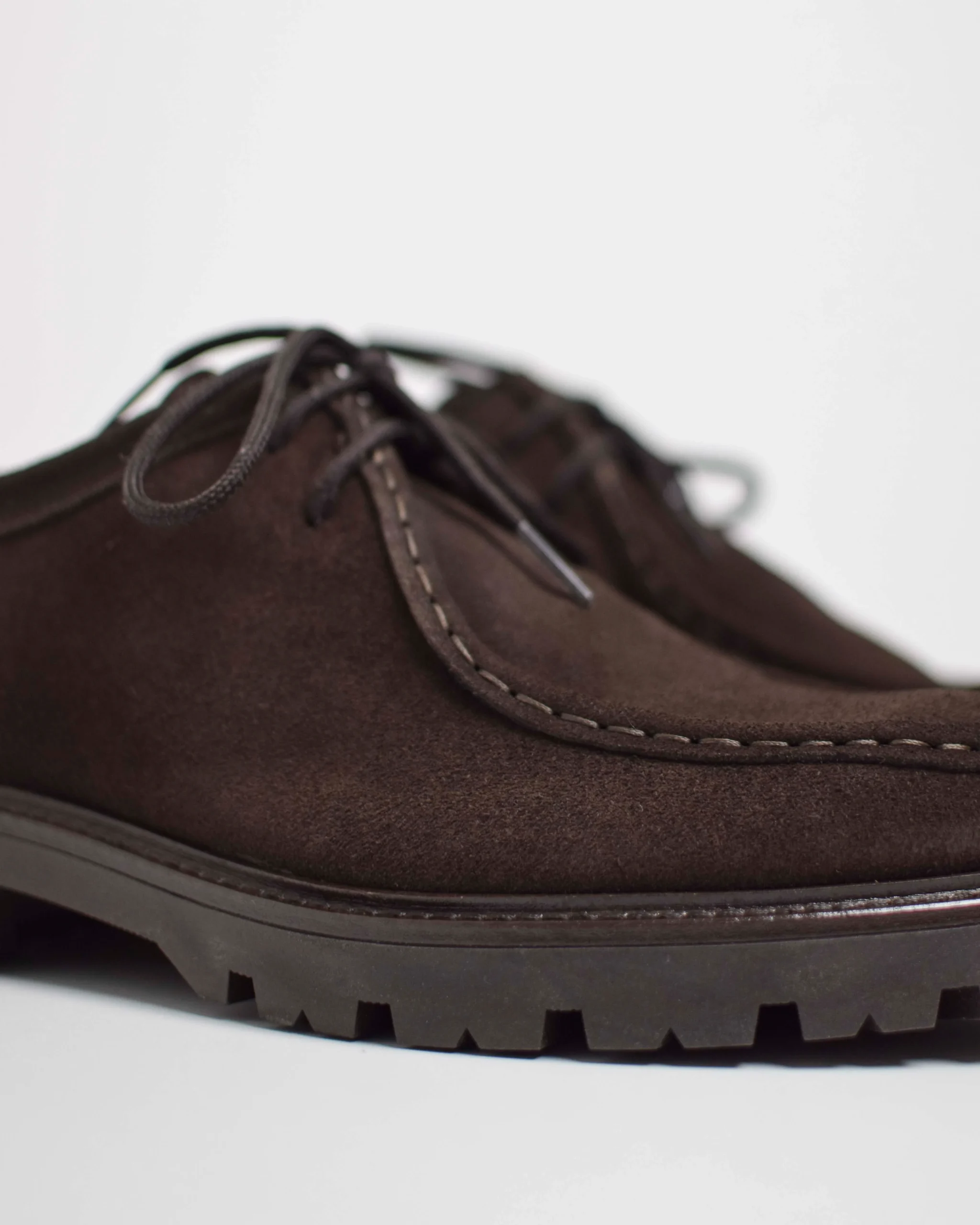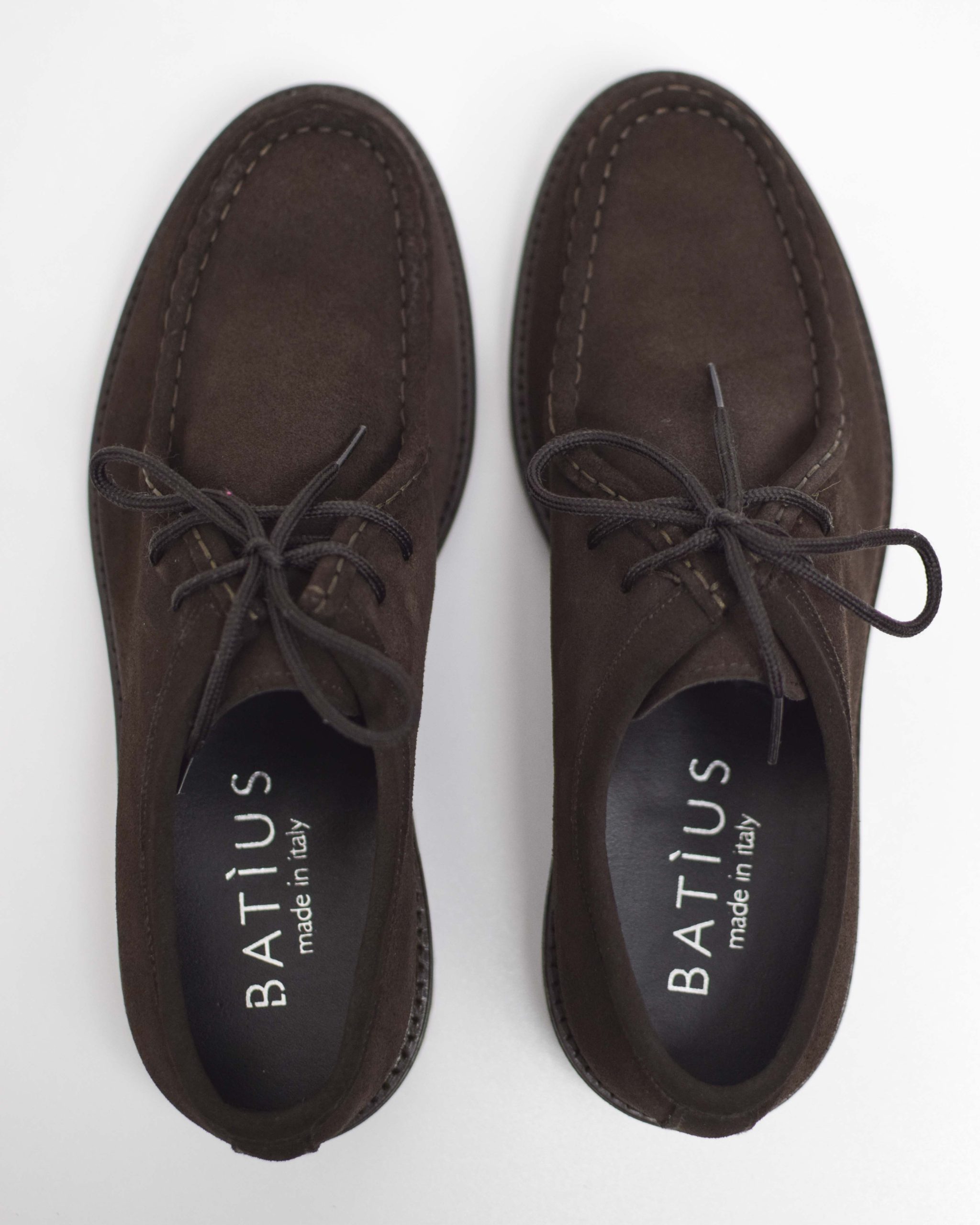 Vera pelle scamosciata marrone Plantare comfort Suola in gomma Produzione italiana