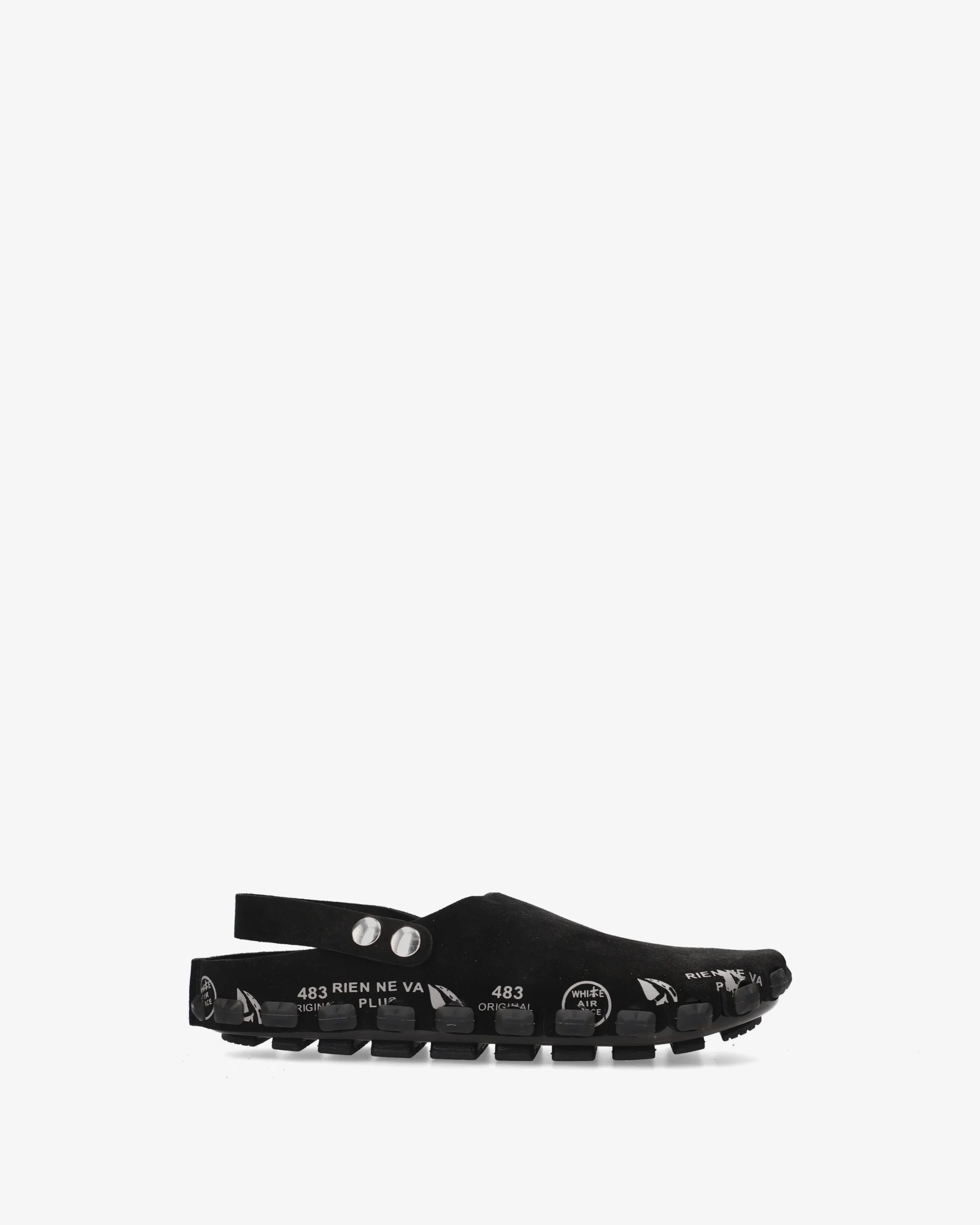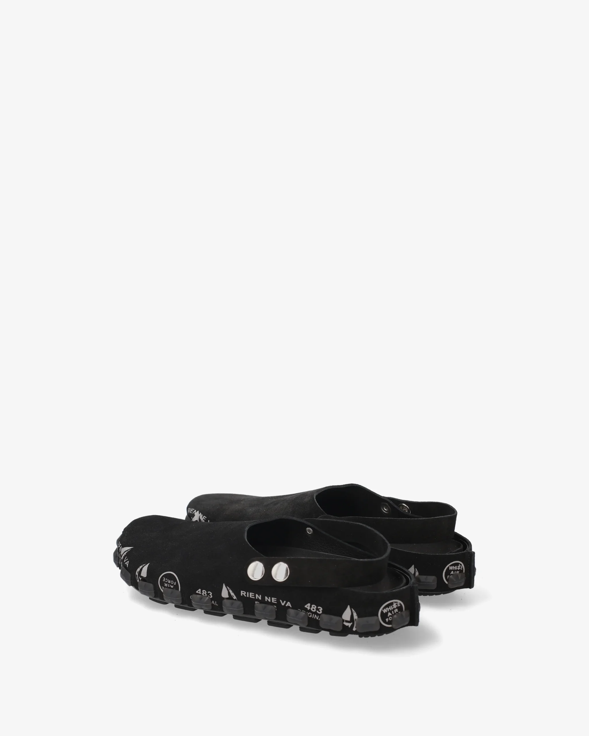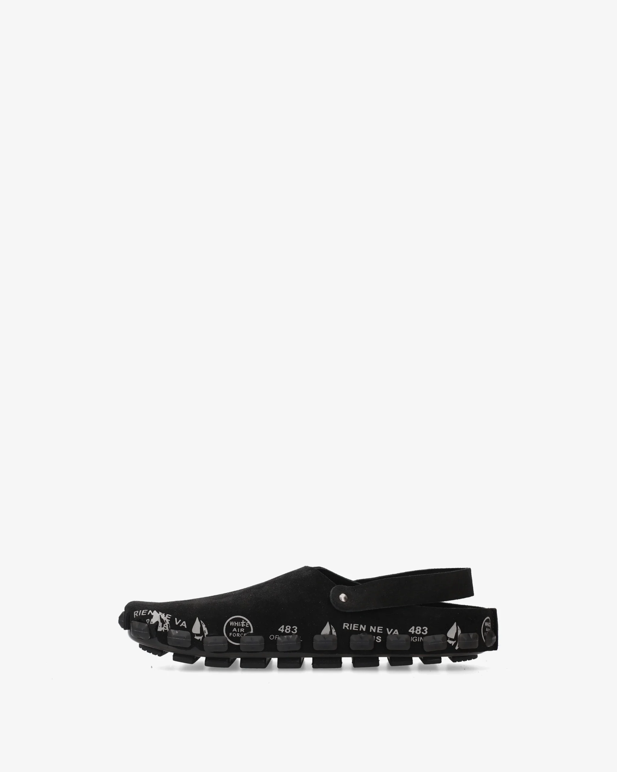 The product was developed to improve the sole-upper assembly system, introducing the concepts of: disassembly, ease of assembly, use of a reduced number of components, and total absence of adhesives. Sole height 2 cm Insole length 28.1 cm The shoe pictured is size 43. Color: Black