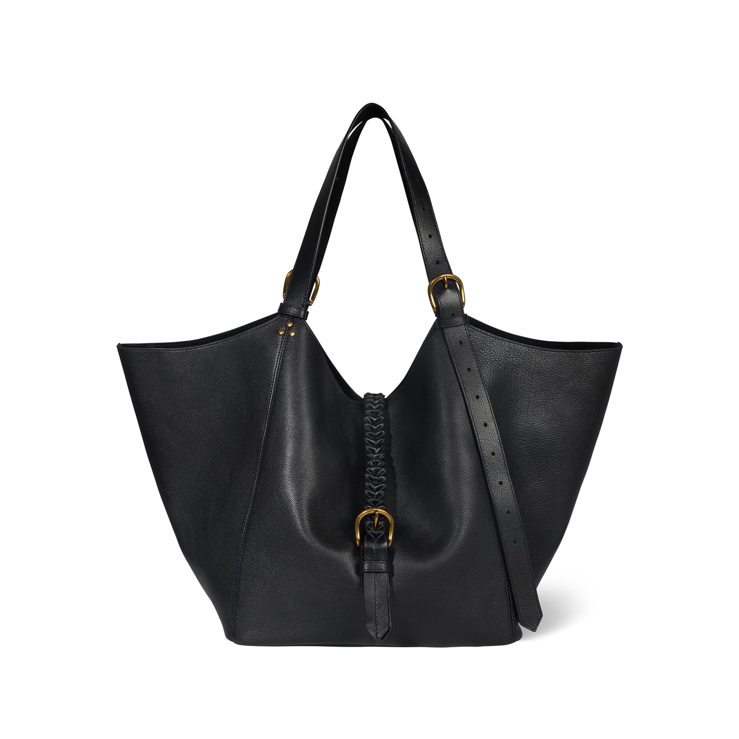 Borsa trapezio a spalla e a tracolla JOSEPH di Jérôme Dreyfuss realizzata in pelle di bufalo di colore nero. Chiusura sul fronte con cinturino intrecciato e fibbia regolabile di colore oro brunito. Interno rivestito in camoscio di colore nero con pochette piatta interna chiusa con zip. Tracolla lunga regolabile per uso a spalla e a tracolla per poterla allungare con fibbia di colore brunito.