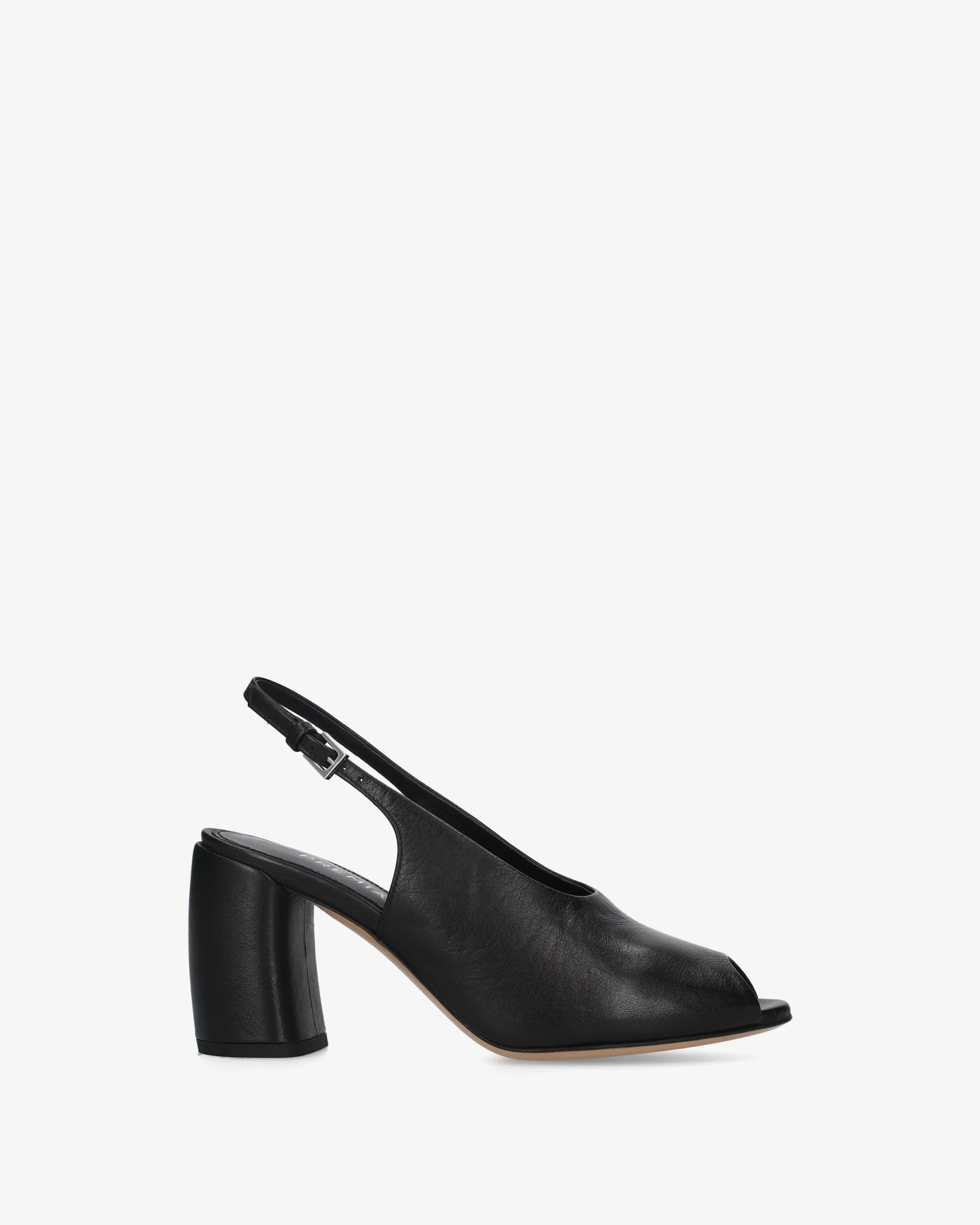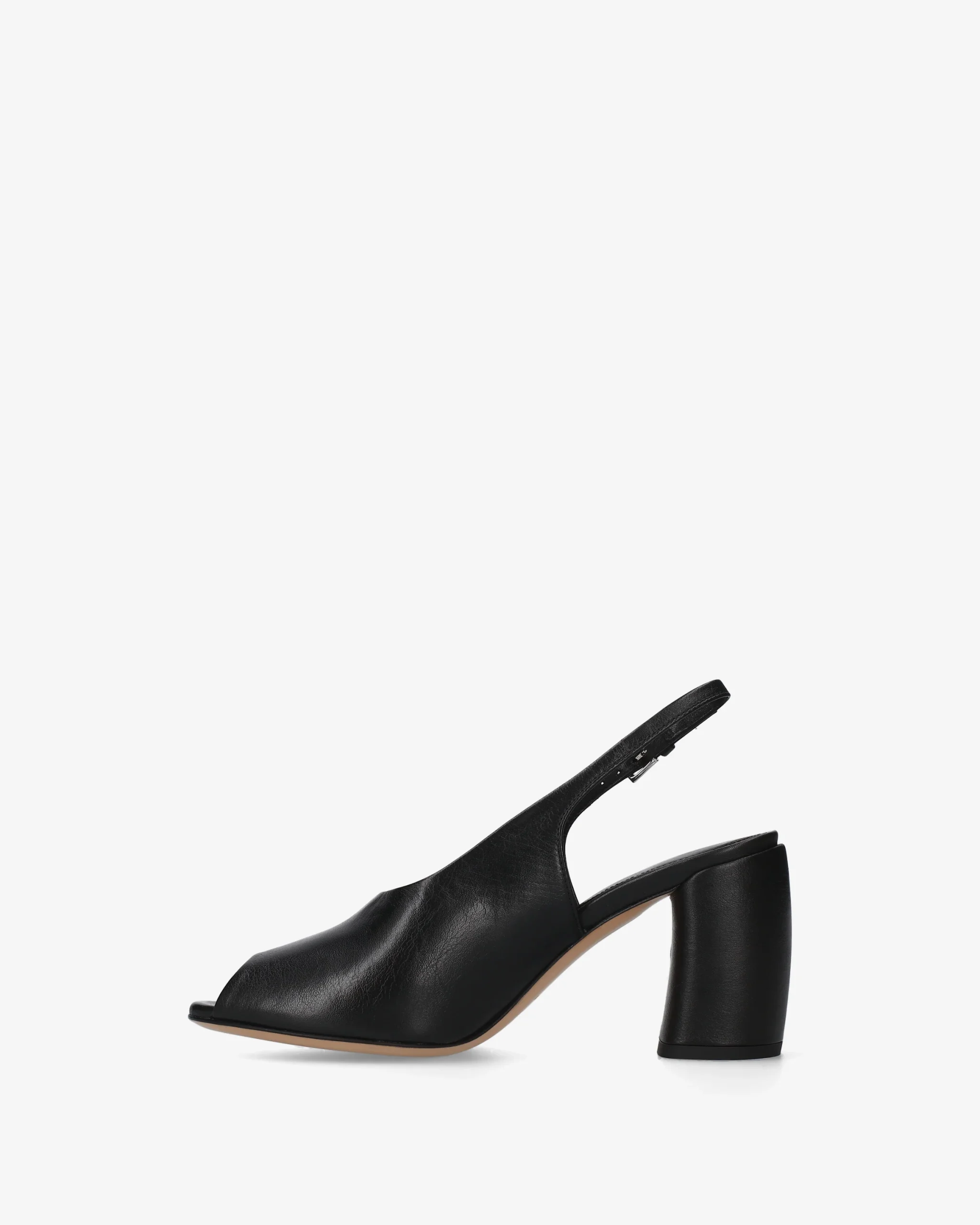 A shoe that blends retro aesthetics with modern architectural lines. This slingback with a block heel stands out for its soft leather, offering a perfect balance between formal elegance and structural comfort.