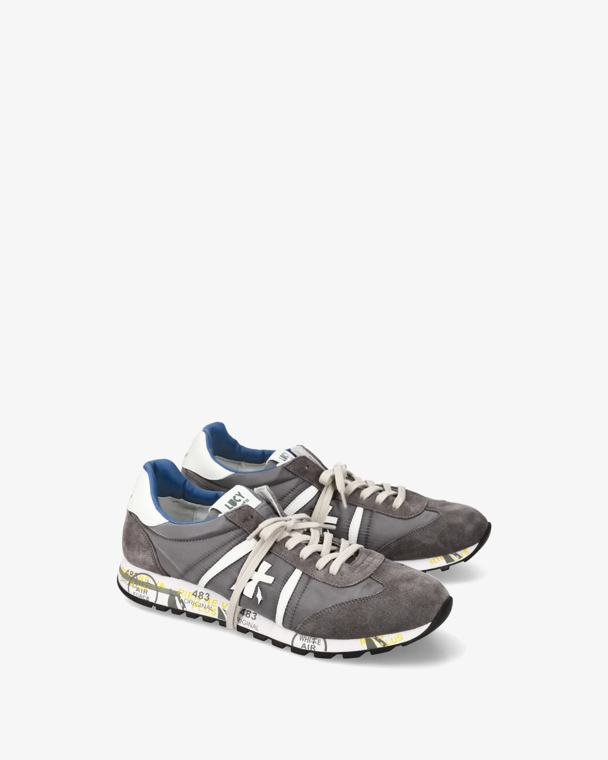 Timeless, iconic, and casual. They embody the Premiata Family manifesto. Their hybrid design and mix of versatile, simple yet sophisticated materials make them a must-have item. The fabric and suede upper, with the Premiata logo on the side, characterizes this emblem.