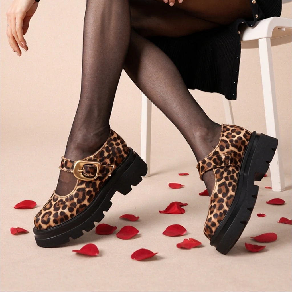 La Mary Jane “Carlotta 01” in cavallino maculato รจ la calzatura ideale per chi vuole osare con eleganza e carattere. La tomaia in cavallino dal pattern maculato aggiunge un tocco selvaggio e sofisticato, creando un contrasto sorprendente con il fondo carroarmato in gomma, che dona grinta e robustezza. Il cinturino iconico mantiene il fascino della silhouette classica, mentre il design audace rende questa Mary Jane perfetta per chi desidera farsi notare.