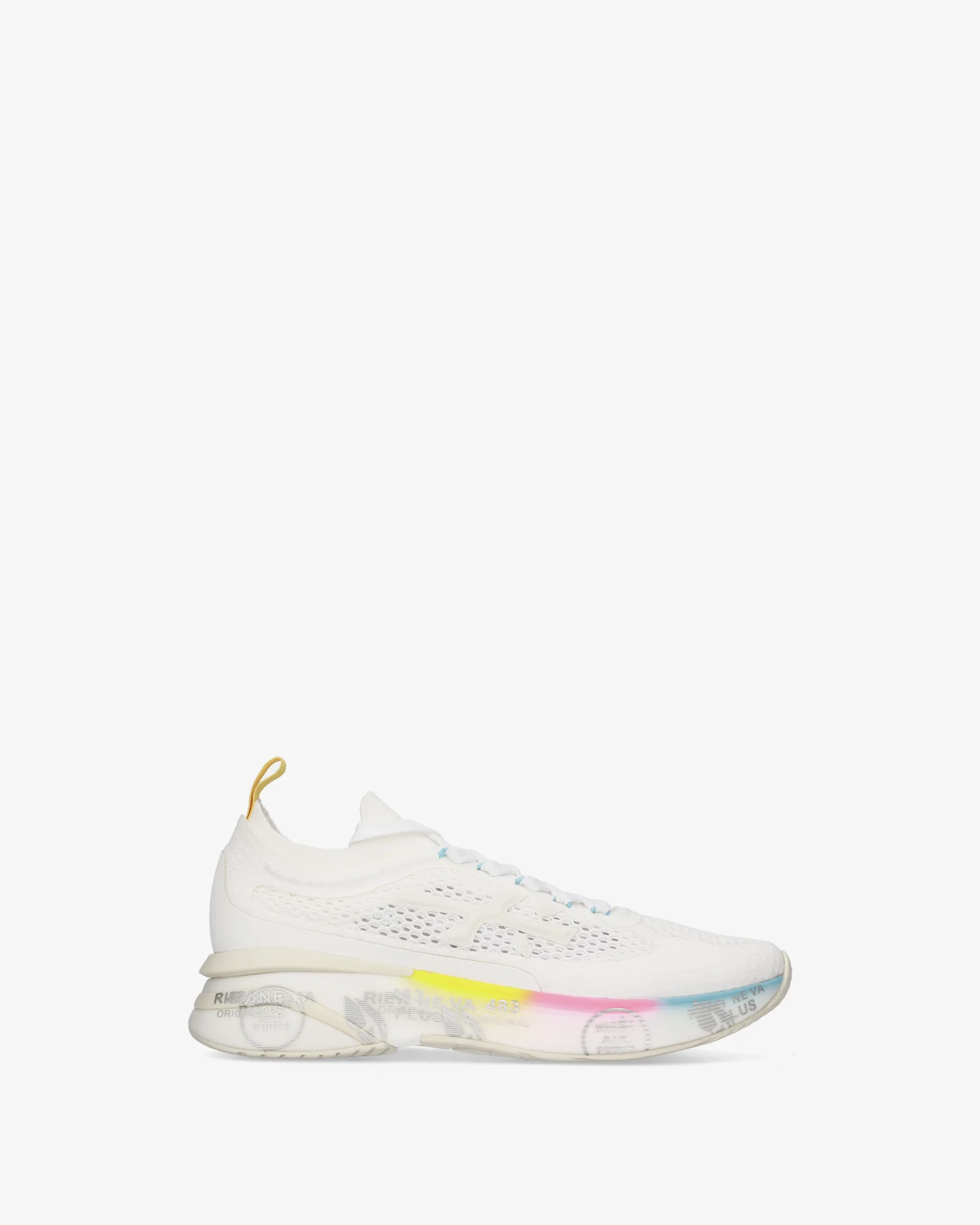 Designed to impress. The Moerun is based on lightness of movement, stability, and the cushioning sensation provided by the innovative sole. The new silhouette is rich in details: logo on the outer side, PREMIATA lettering on the inner side, and model name on the label.