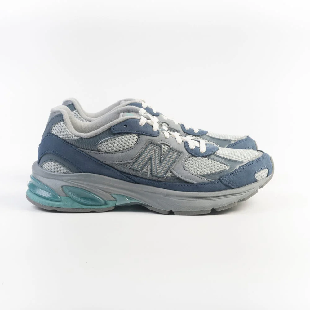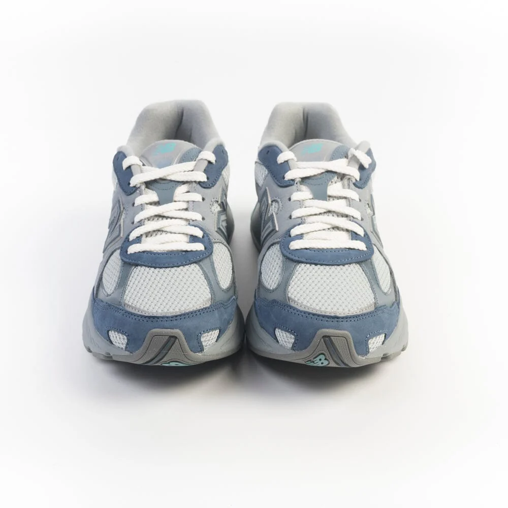 Sneakers modello 20101 di New Balance dal design ispirato alle tradizionali silhouette da running per un look piรน elegante, realizzata con tomaia in mesh di colore grigio e camoscio di colore blu, dettagli in materiale gommato di colore grigio. Morbidi lacci di colore avorio. N distintiva laterale del brand di colore grigi . Fondo in gomma con dettagli di colore azzurro di altezza di mm 30 (tallone) circa.