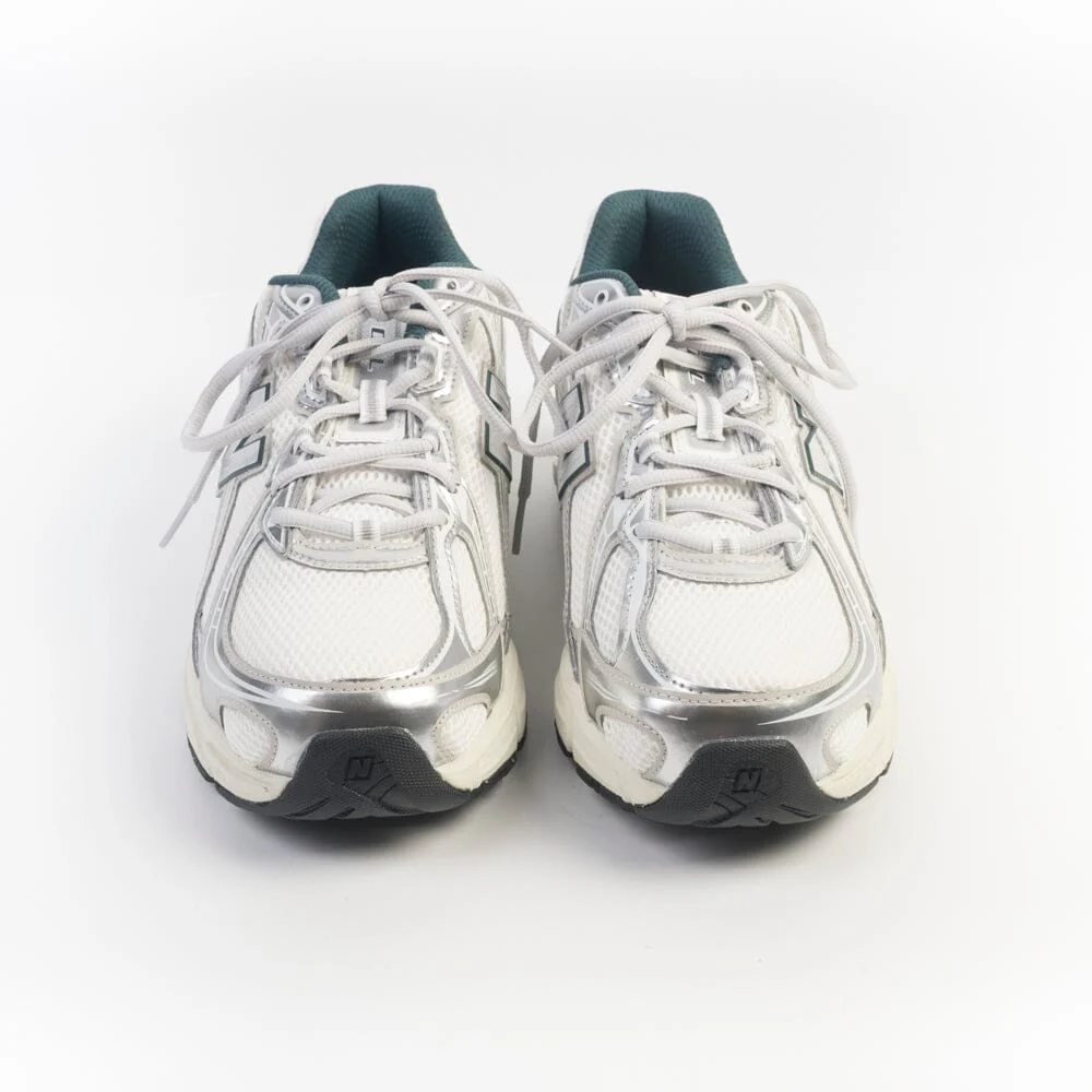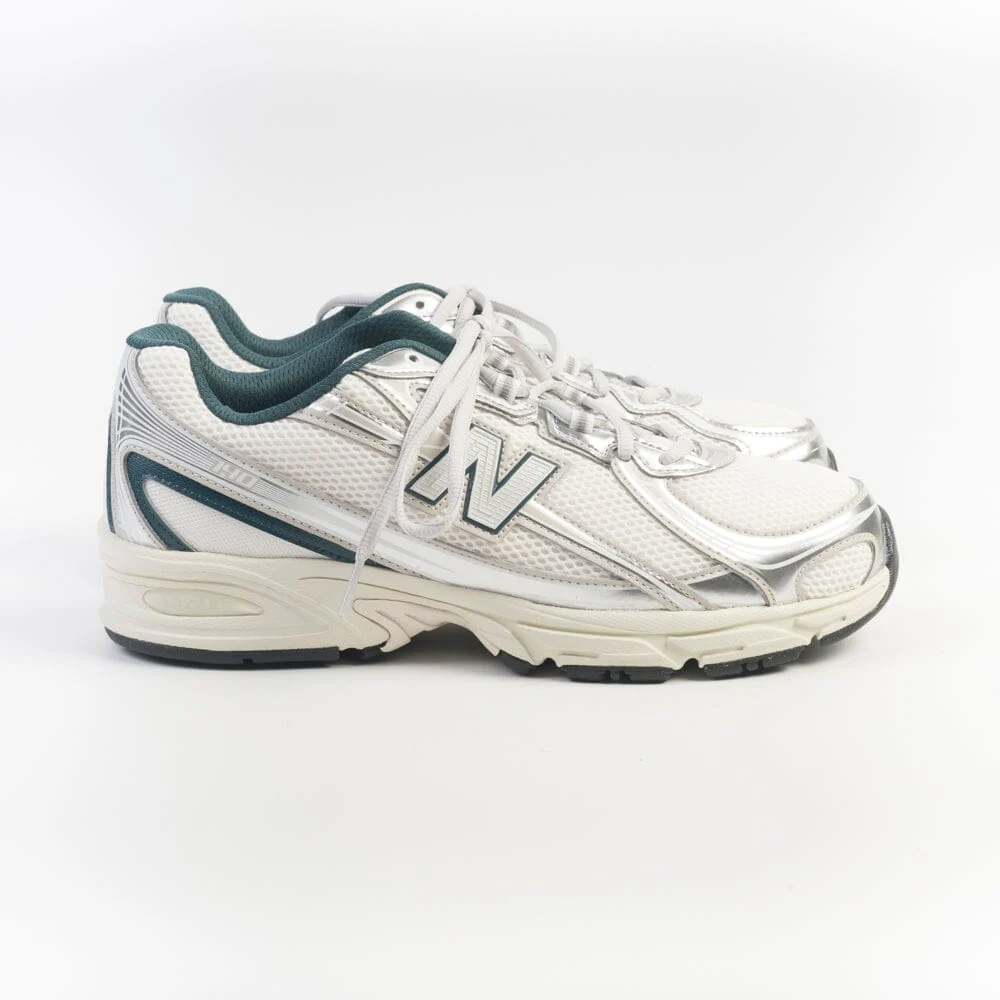 La leggerissima 740 di New Balance fa parte della linea “running” ed รจ realizzata con tomaia in mesh di colore avorio, materiale gommato di colore argento e bianco e dettagli in pelle liscia di colore verde petrolio. Fondo in gomma con tecnologia Abzorbยฎ, altezza di 30 mm (tallone). Morbidi lacci di colore avorio. Marchio distintivo laterale del brand di colore avorio con bordo verde petrolio.