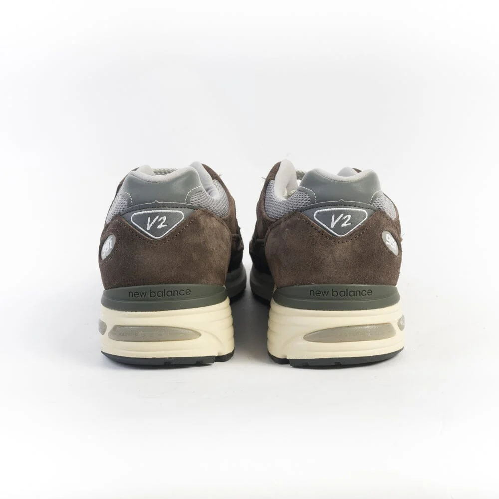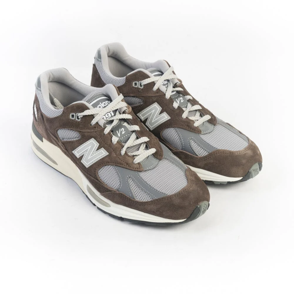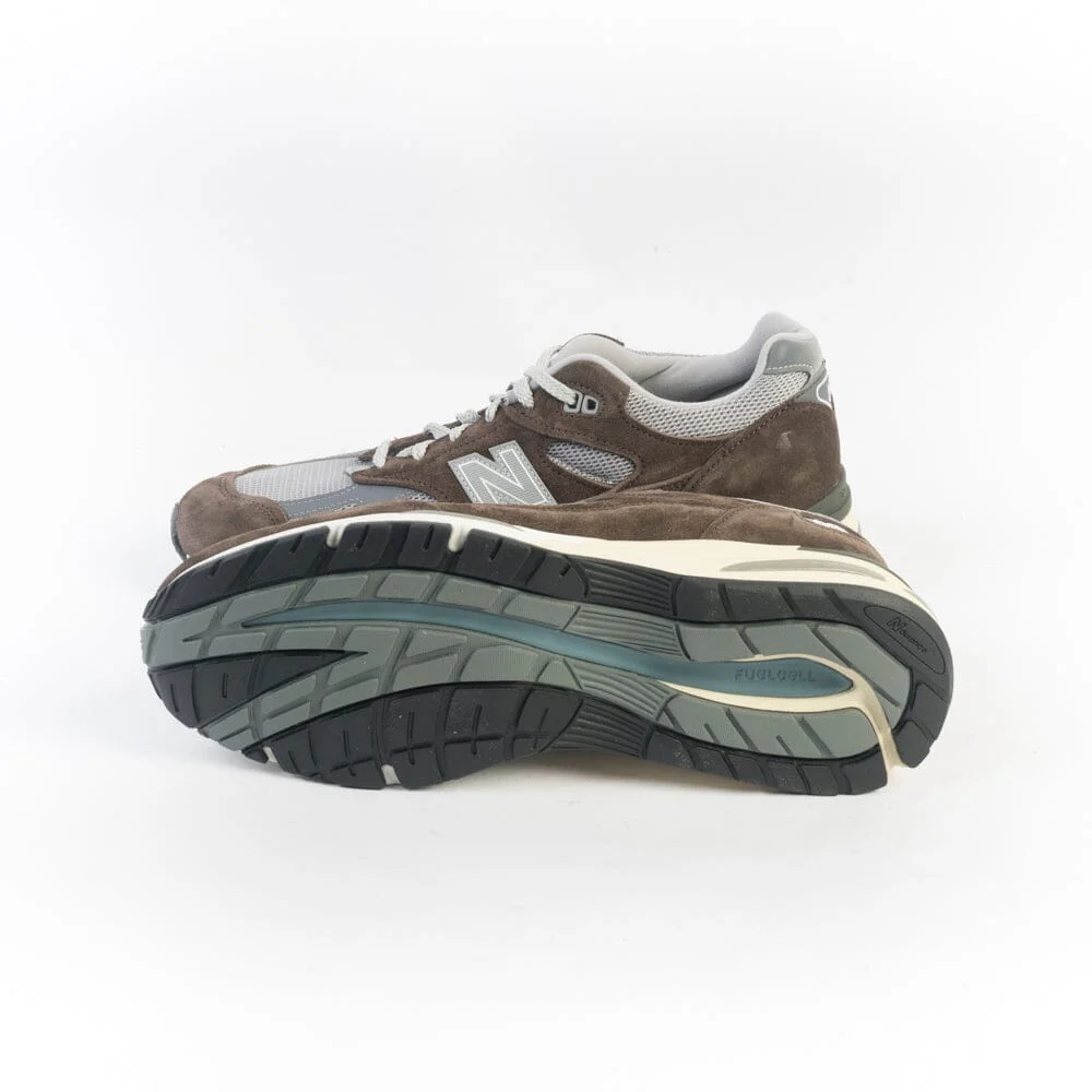 La 991 รจ la Sneaker iconica di New Balance dal comfort eccezionale, qui proposta nella sua nuova versione V2, che vede l’introduzione dell’intersuola ammortizzata in FuellCell. Tomaia in pelle scamosciata di colore marrone, con inserti in pelle e mesh di colore grigio e materiale gommato in nuance ; label laterale del brand in materiale catarifrangente. Lacci in cotone di colore brigio chiaro e laccio di scorta di colore bianco. Ammortizzazione ABZORBยฎ nella parte centrale del piede per un assorbimento eccezionale degli shock da impatto. Suola in gomma soffiata.