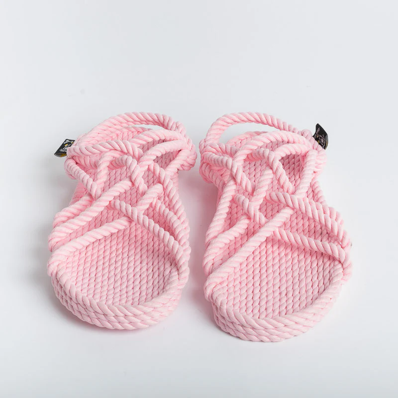 Sandali modello incrociato, superleggero, realizzato in corda di polipropilene, anallergico, lavabile in lavatrice. Calzature vegane. Calzata regolare.