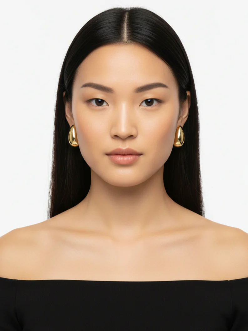 Orecchini dal profilo elegante e minimalista, caratterizzati dalla loro forma ovale distintiva e dalla chiusura a bottone. Realizzati in ottone placcato oro, garantiscono durabilitร e una finitura luminosa che resiste nel tempo. Con un diametro di 3 cm, offrono la giusta proporzione per valorizzare il viso senza risultare invadenti. adattandosi facilmente a qualsiasi stile personale e guardaroba.