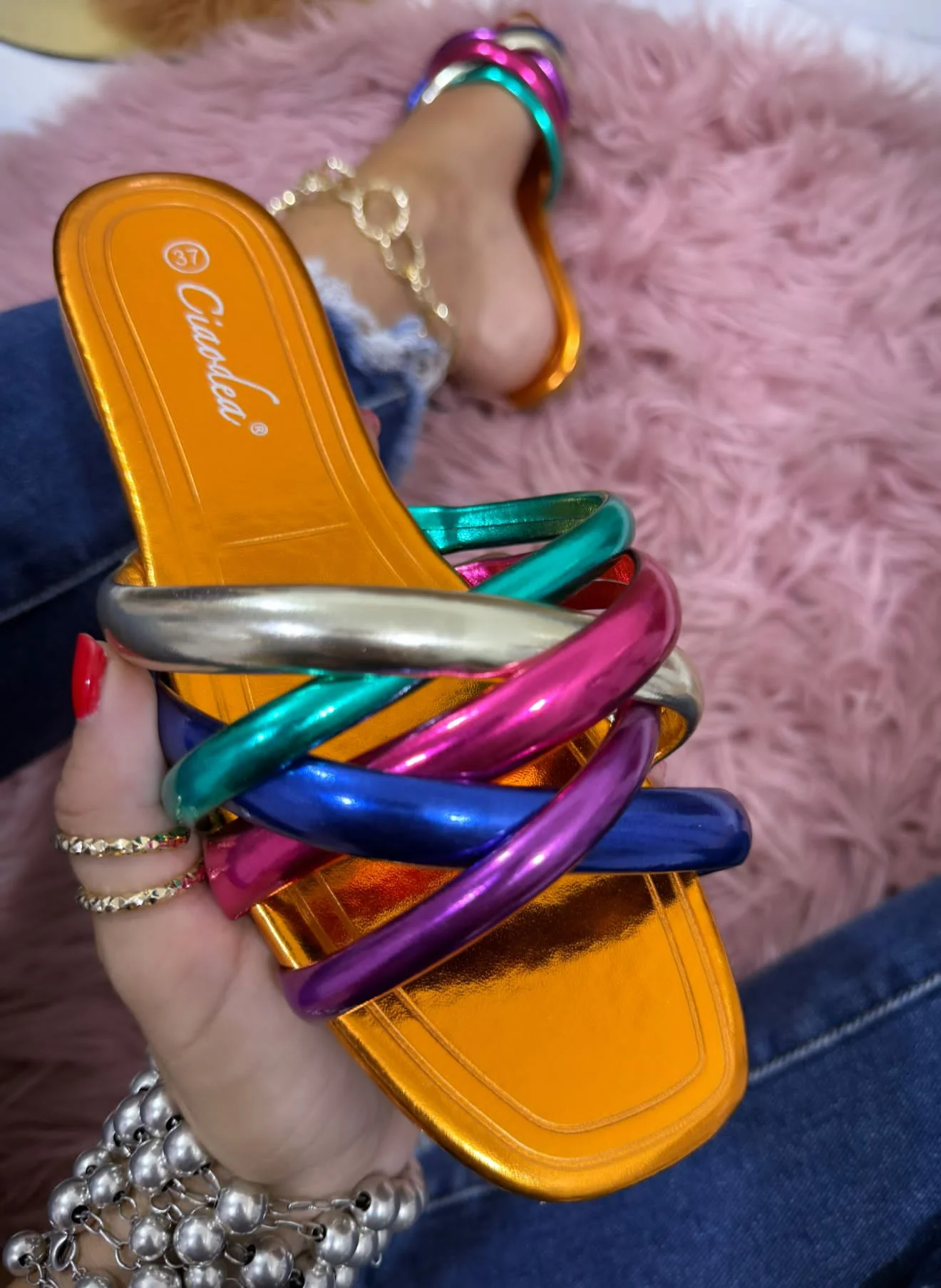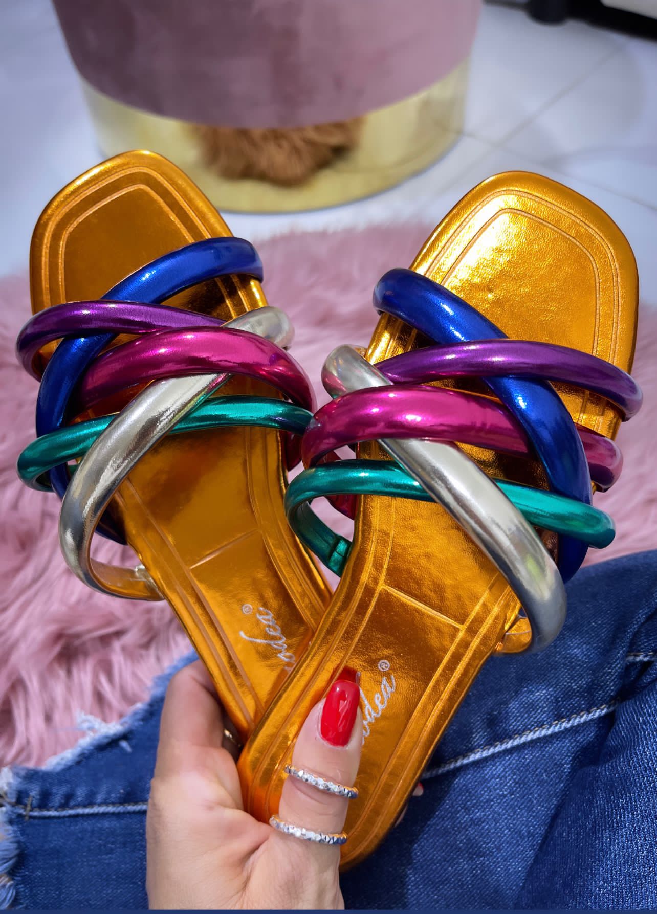 Con Panarea Oro – Ciabatta, aggiungi un tocco di lusso al tuo outfit casual. La pianta color oro e gli inserti multicolor rendono questa ciabatta da passeggio unica e alla moda. Goditi lo stile mentre cammini con facilitร .