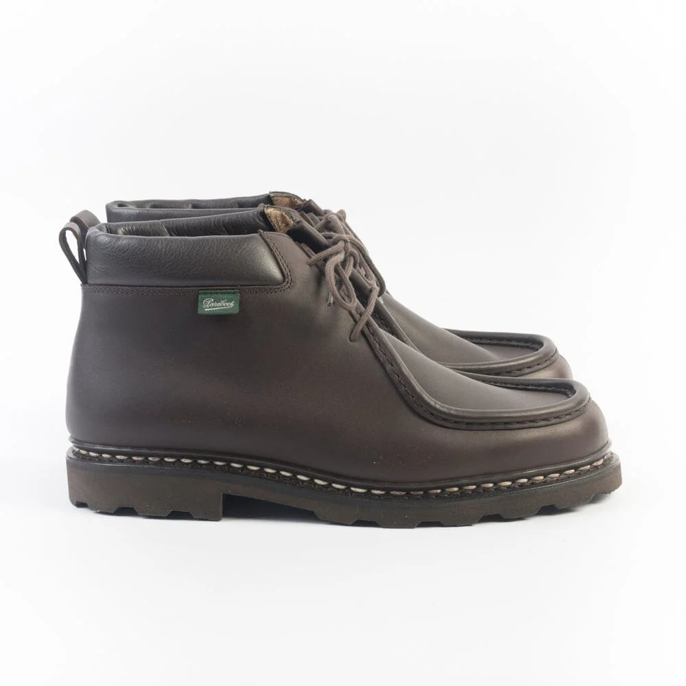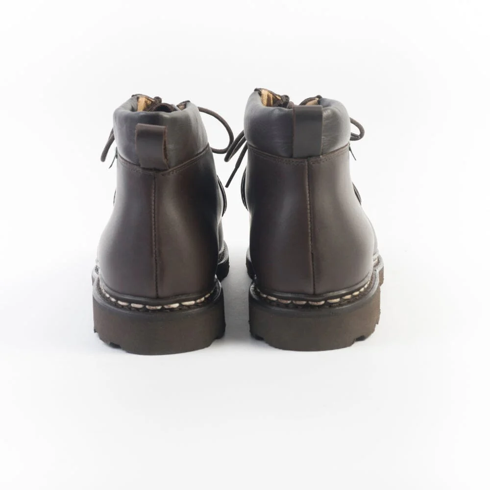 Iconico Polacchino Milly Passant di Paraboot alla caviglia, qui realizzato in pregiata pelle, conciata al vegetale di colore marrone con costruzione norvegese. Doppia impuntura che tiene insieme la tomaia e la soletta, assicurando resistenza e assoluta impermeabilitร . Fodera interna in pelle. Morbidi lacci in cotone. Autentiche suole Paraboot in gomma.