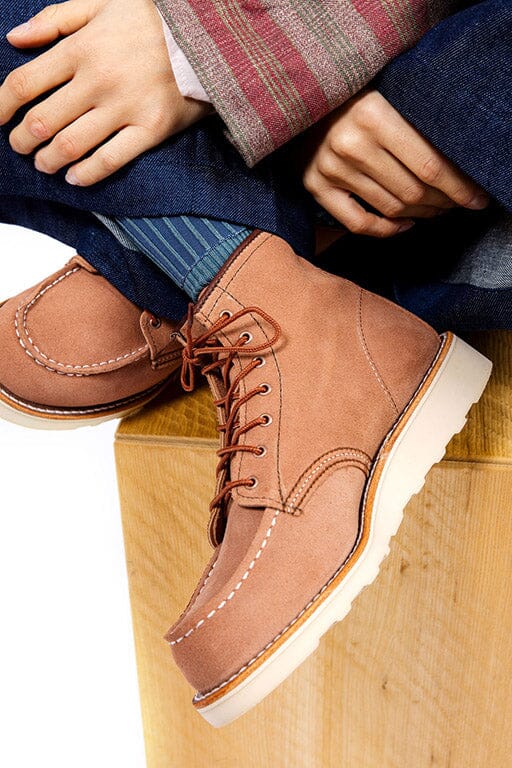 Il Moc Toe รจ uno degli stili piรน popolari della Collezione Red Wing Donna, qui proposto nell’edizione speciale in morbido camoscio di colore rosa e una suola piรน morbida, per uno stivale molto piรน confortevole e adatto alla calzata femminile. Il Moc Toe reinterpreta il classico 6″ Moc Toe della collezione Heritage, originariamente progettato nei primi anni ’50 per soddisfare le esigenze di cacciatori e agricoltori.