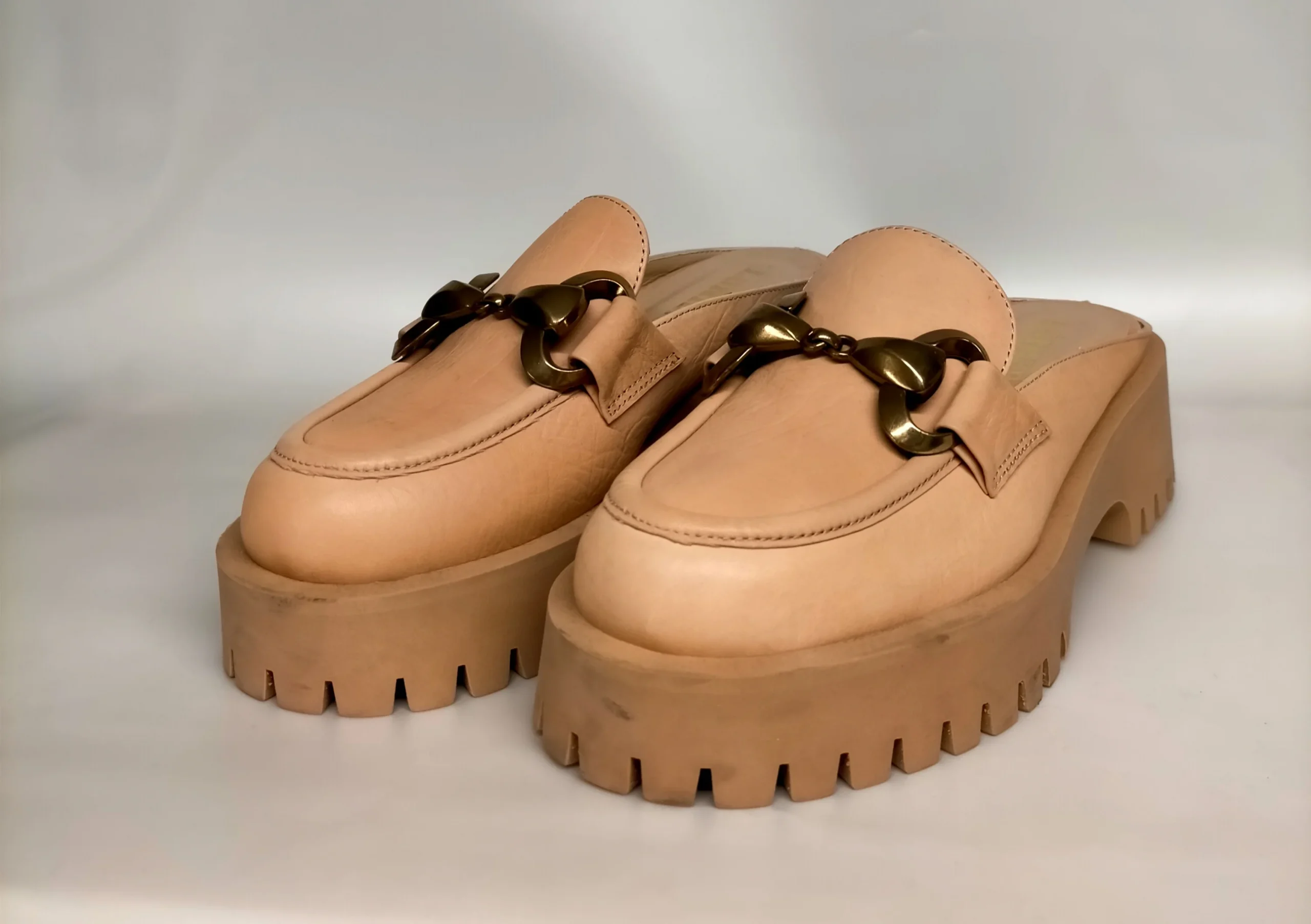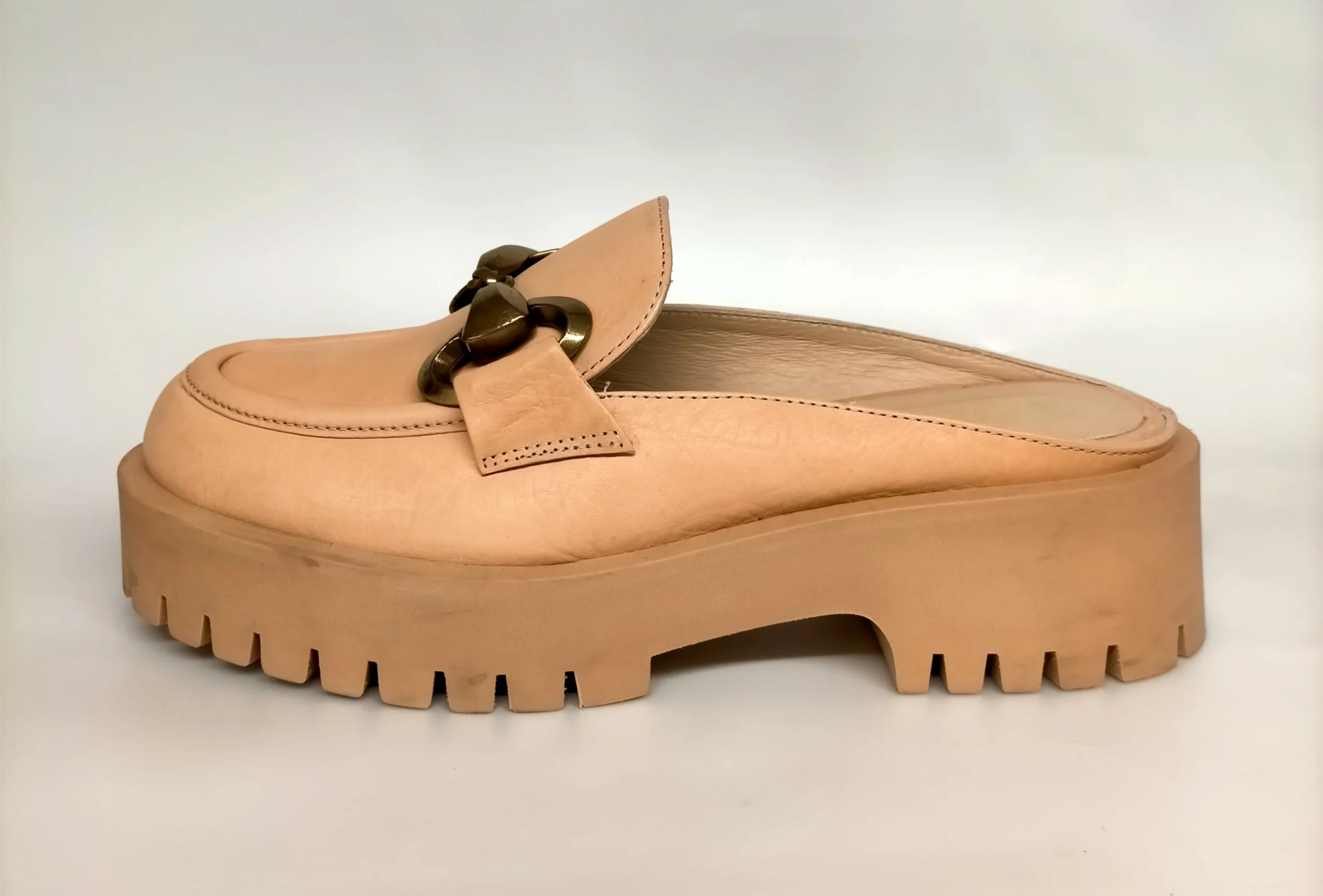 Sabot LONIGRO con carrarmato in pelle nude, moschettone oro satinato