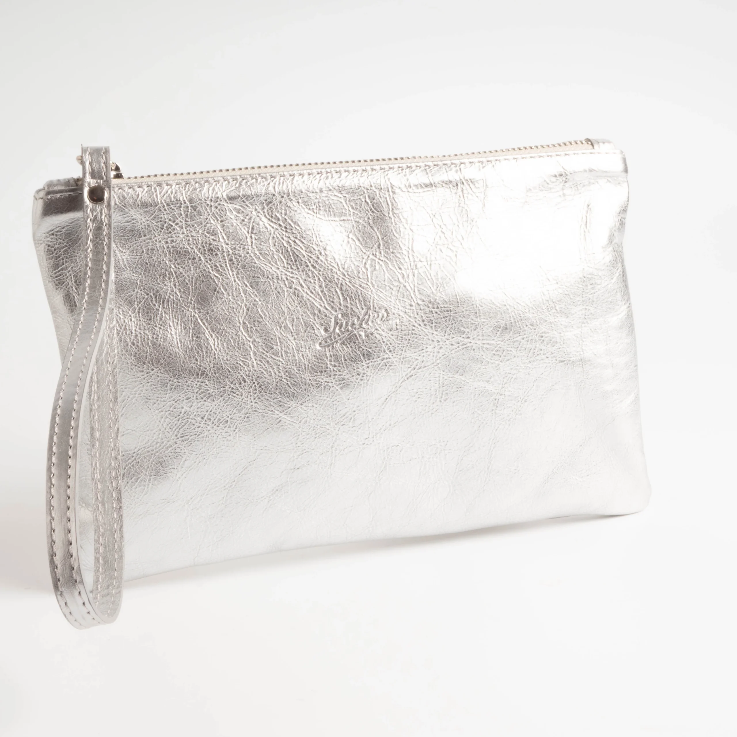 Collezione Continuativa Pochette in morbida pelle, unica apertura con zip centrale, completamente foderata all’interno in tessuto color nero logato. Logo Sachet impresso sul fronte. Sacchetto anti-polvere. Misure: 25 cm x 15 cm x 1 cm Design esclusivo Sachet Lavorazione artigianale, Fatto In Italia.