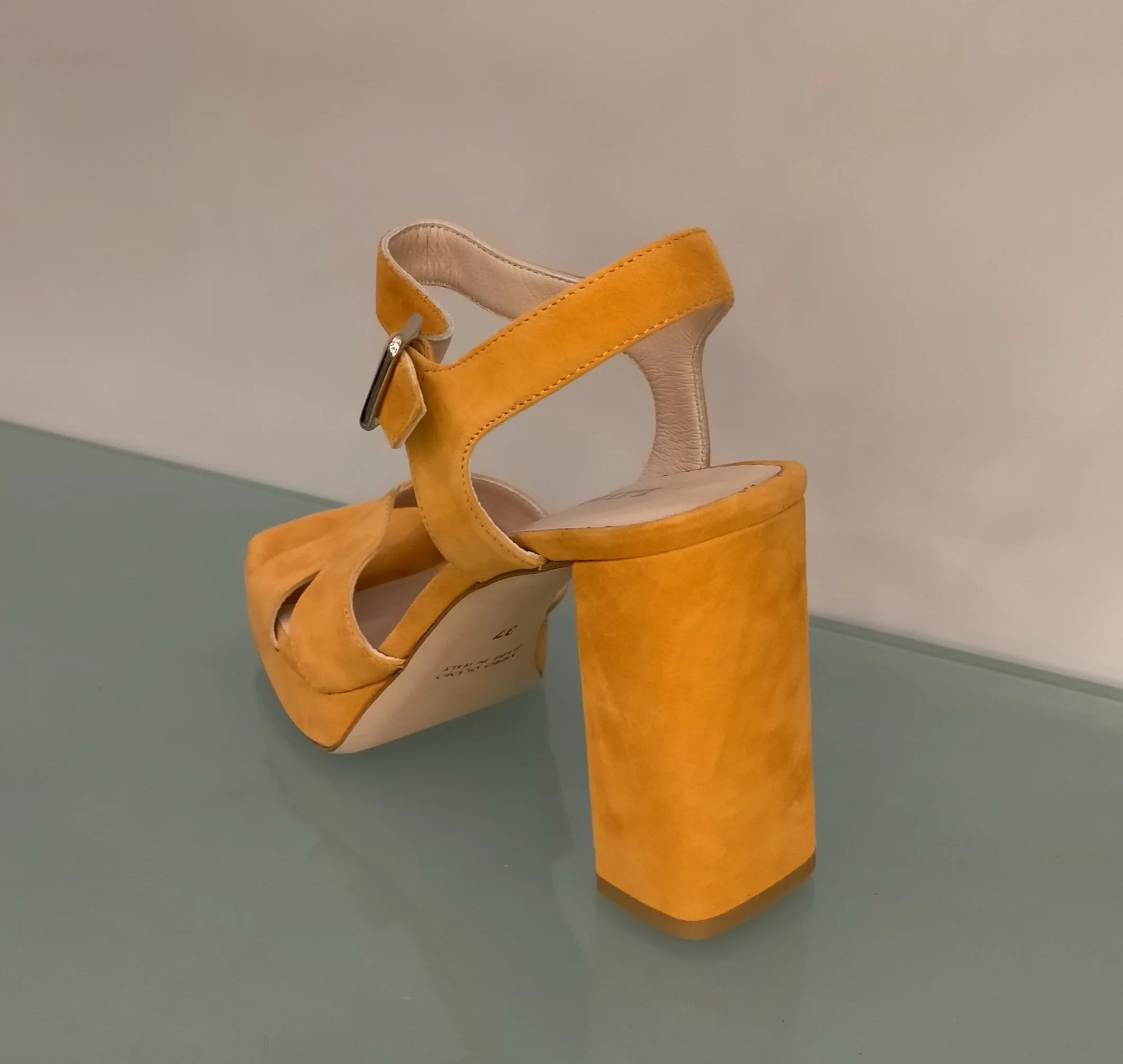 Sandali LONIGRO con plateau in camoscio arancio – punta quadrata