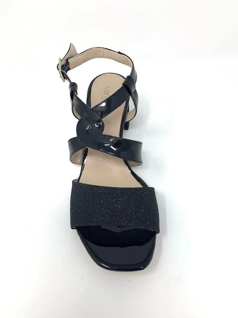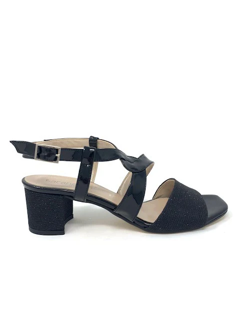 Sandalo tacco 5 cm, comodo e giornaliero, la fascia davanti รฉ realizzata con un tessuto glitter nero