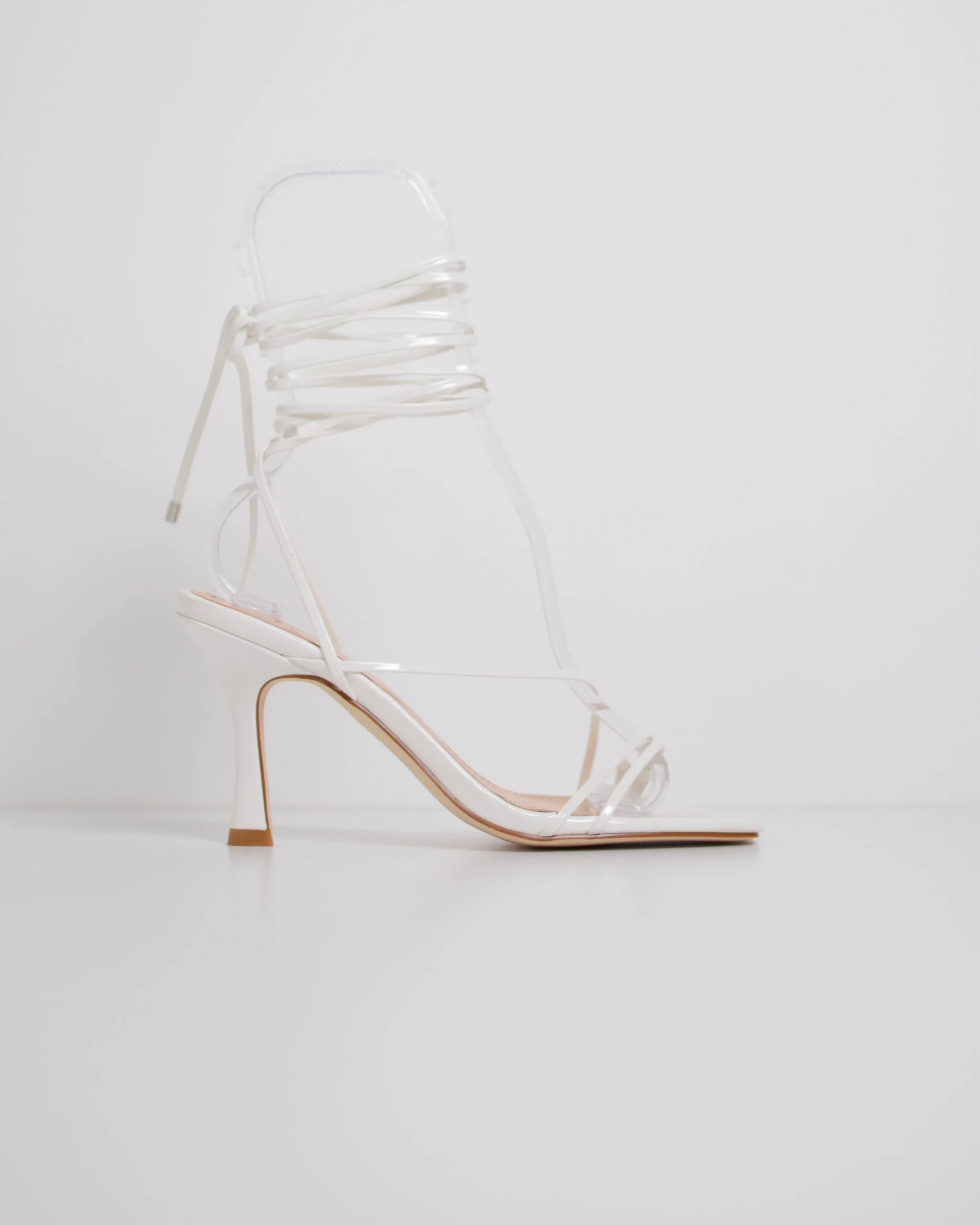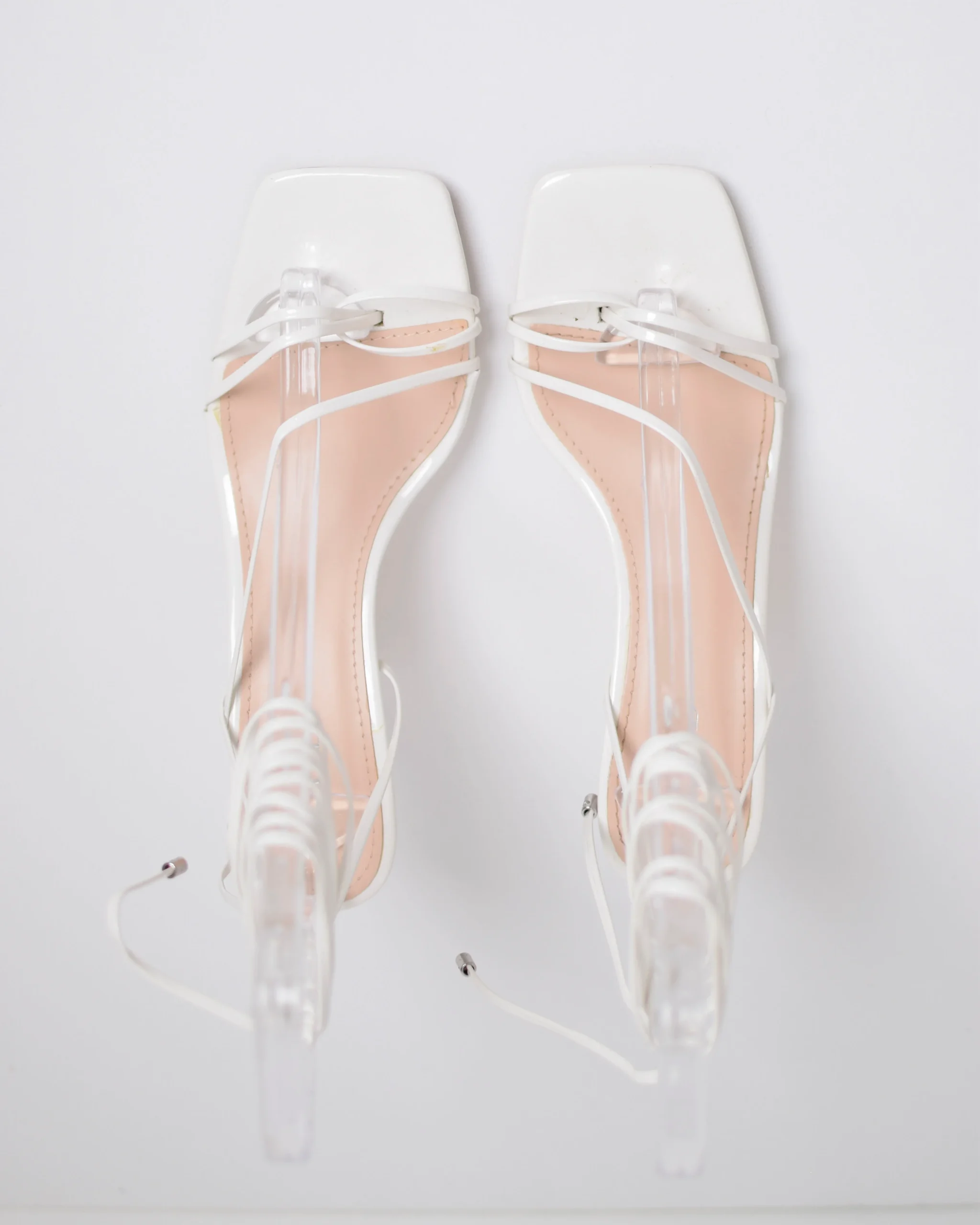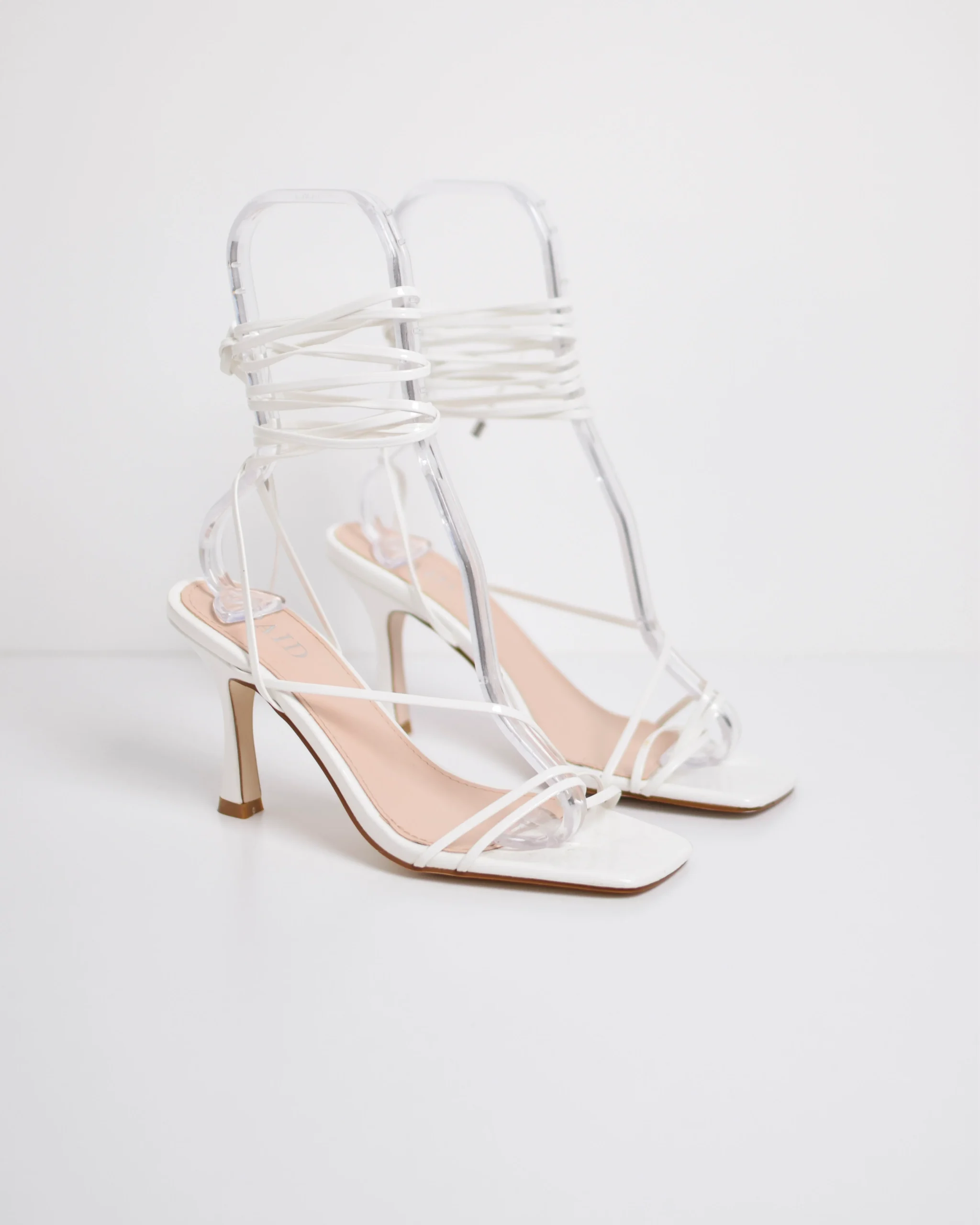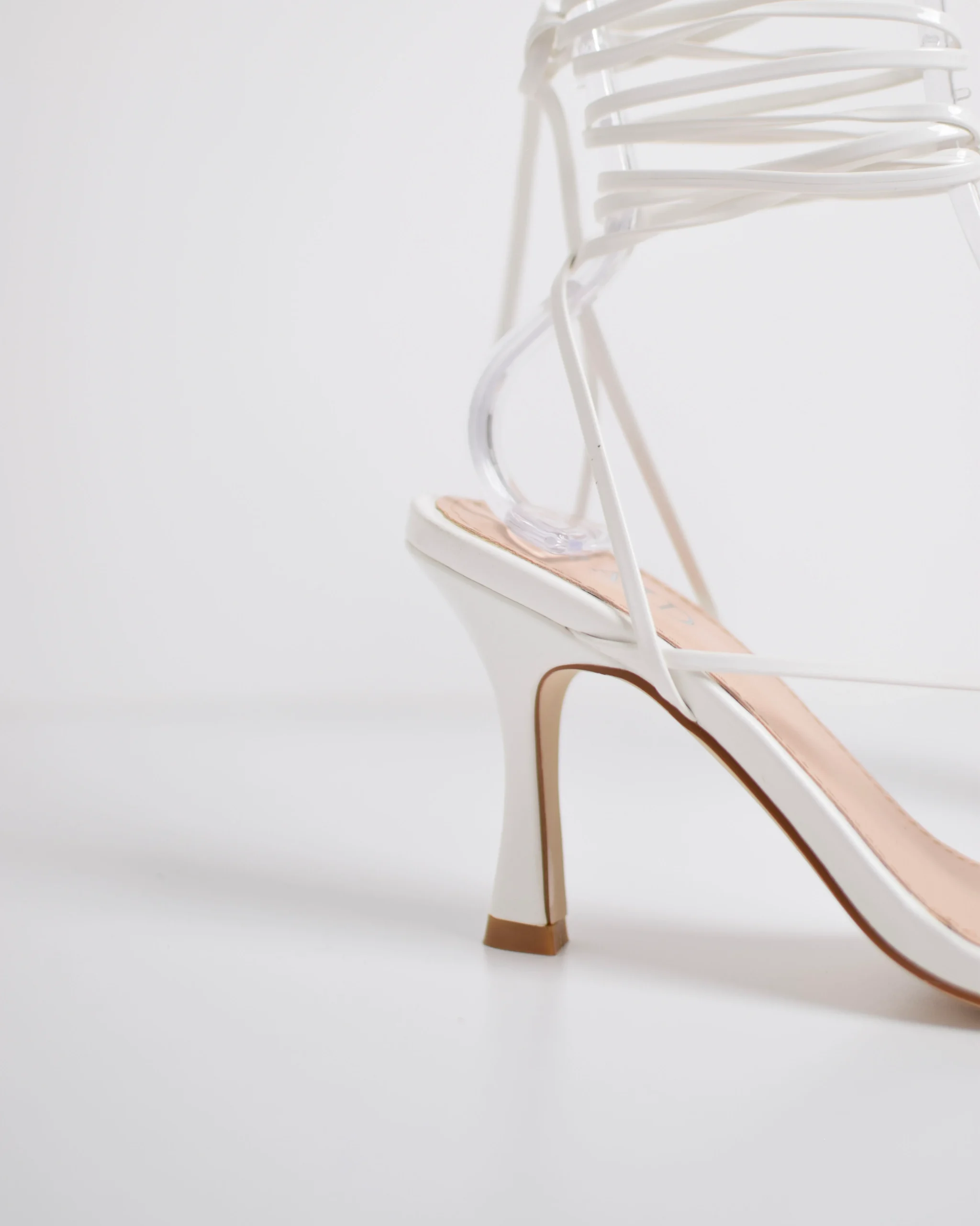 Sandalo con tacco alla schiava Ecopelle Bianco Lucido