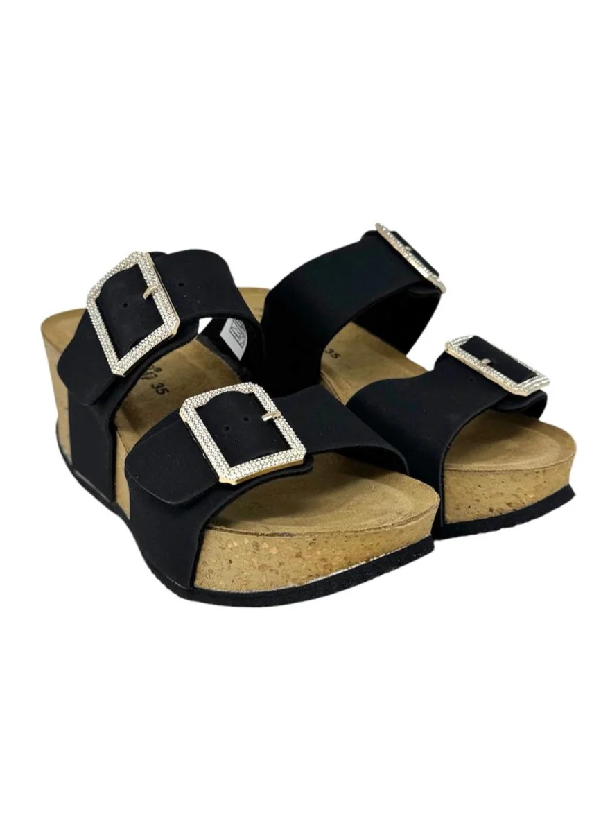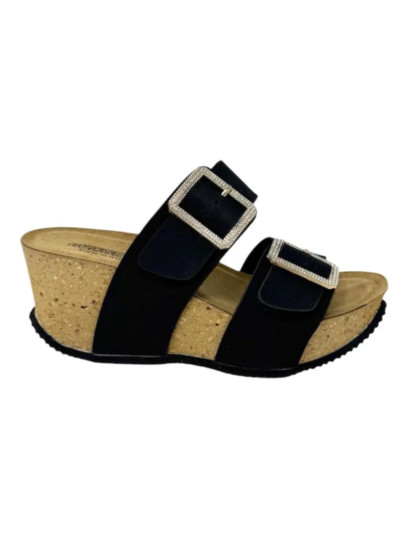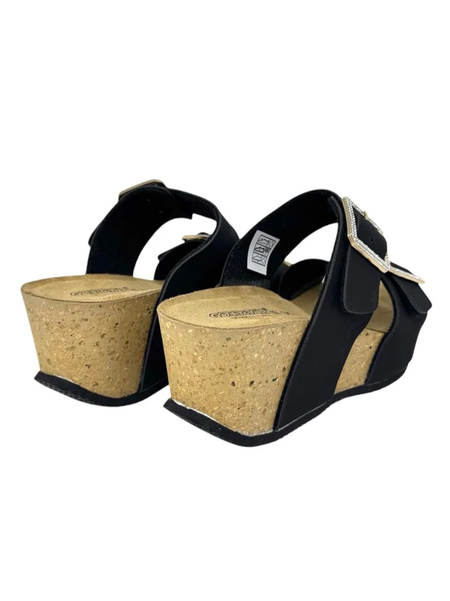 Sandalo zeppa alta doppio cinturino nero – GS1424