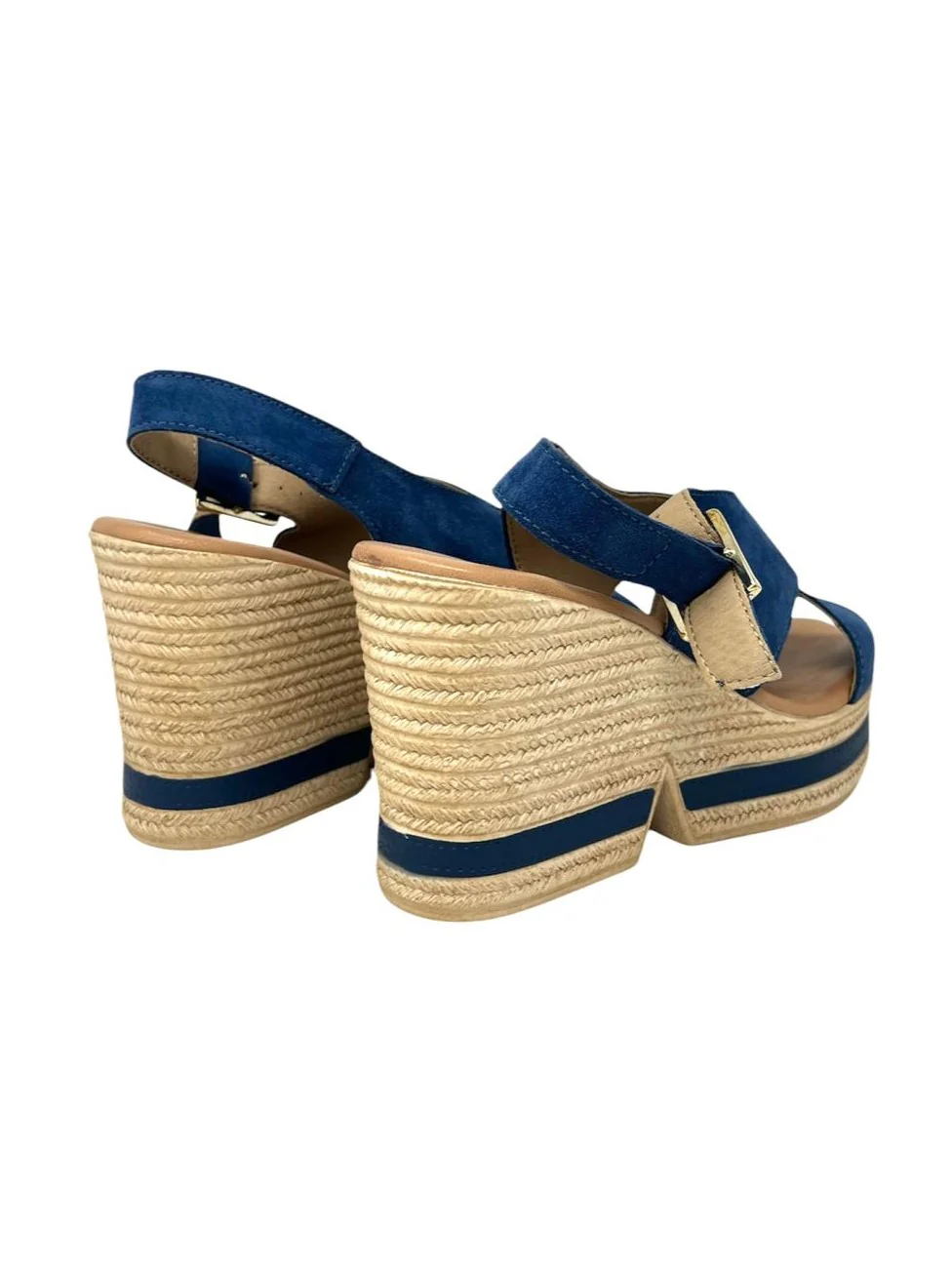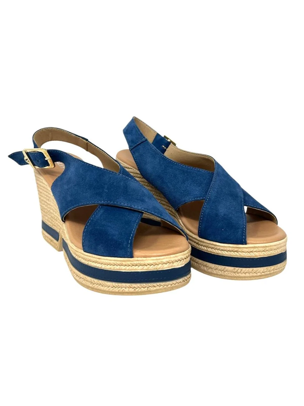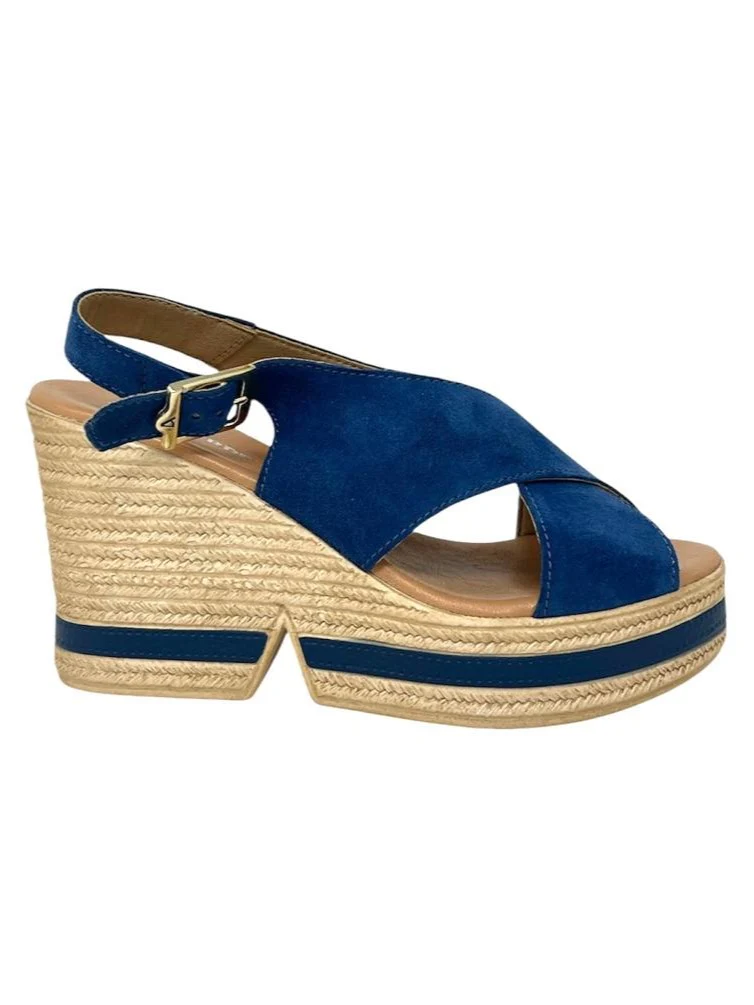 Aggiungi un tocco di stile al tuo look con il Sandalo zeppa suede denim. Realizzato in morbido suede, questo sandalo รจ leggero e confortevole da indossare. La zeppa aggiunge altezza e la suola antiscivolo ti garantisce una camminata sicura. Perfetto per le tue giornate estive!