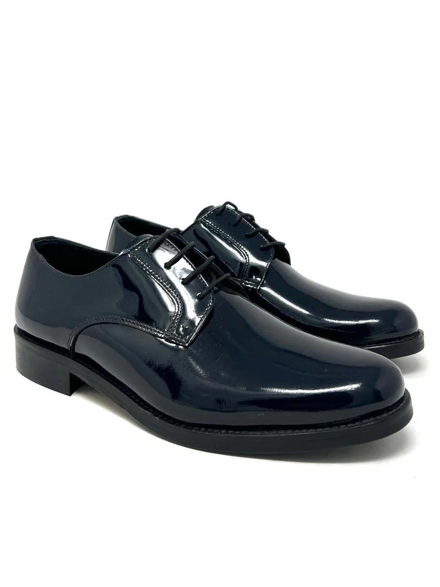 Scarpa elegante derby uomo vernice blu lucida -B7CDERV