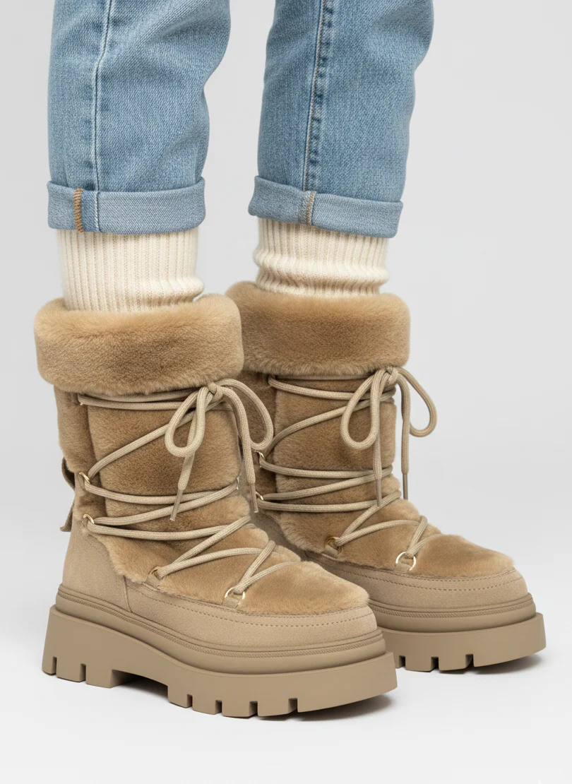 Scarponcino in ecopelliccia color cammello – A61C