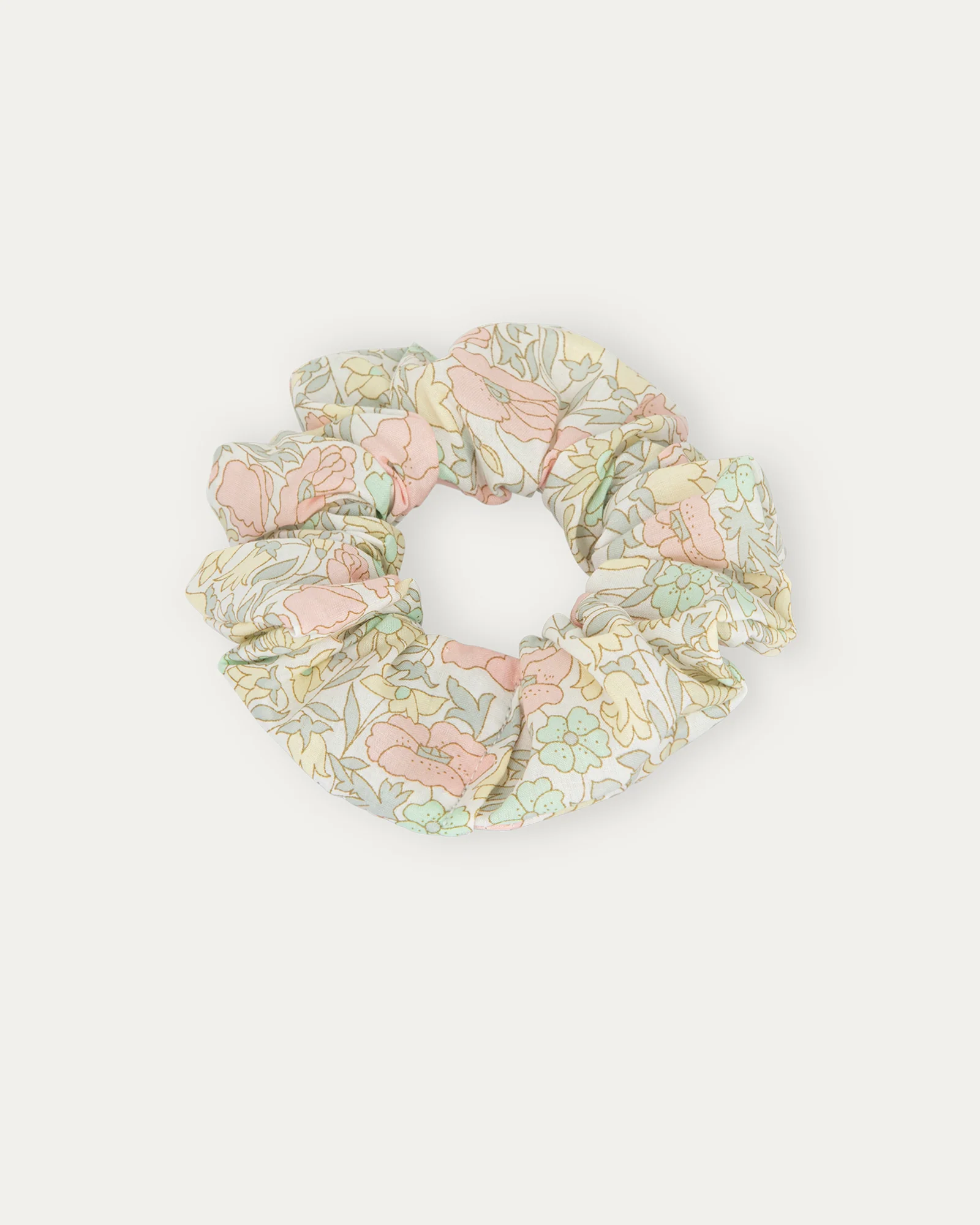 Scrunchy artigianale realizzato a mano con tessuto Liberty of London rinomato per le sue stampe floreali vivaci e pratiche di produzione sostenibile.