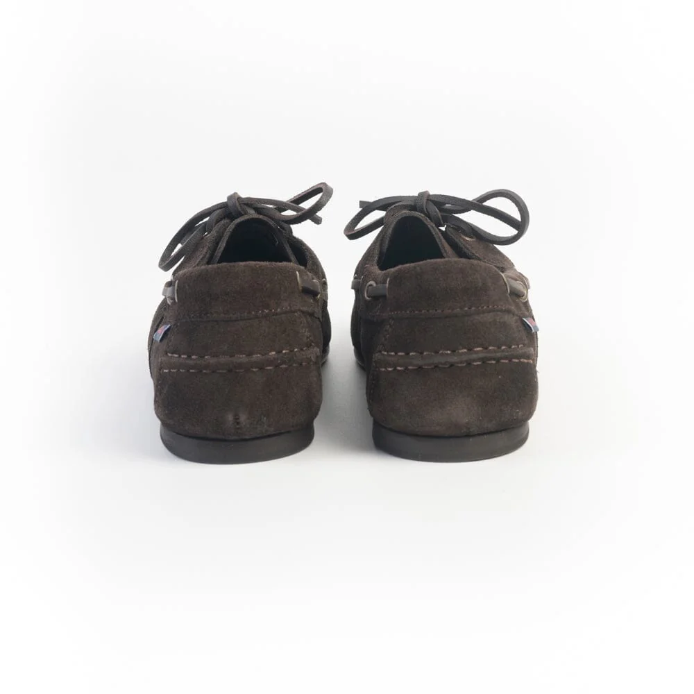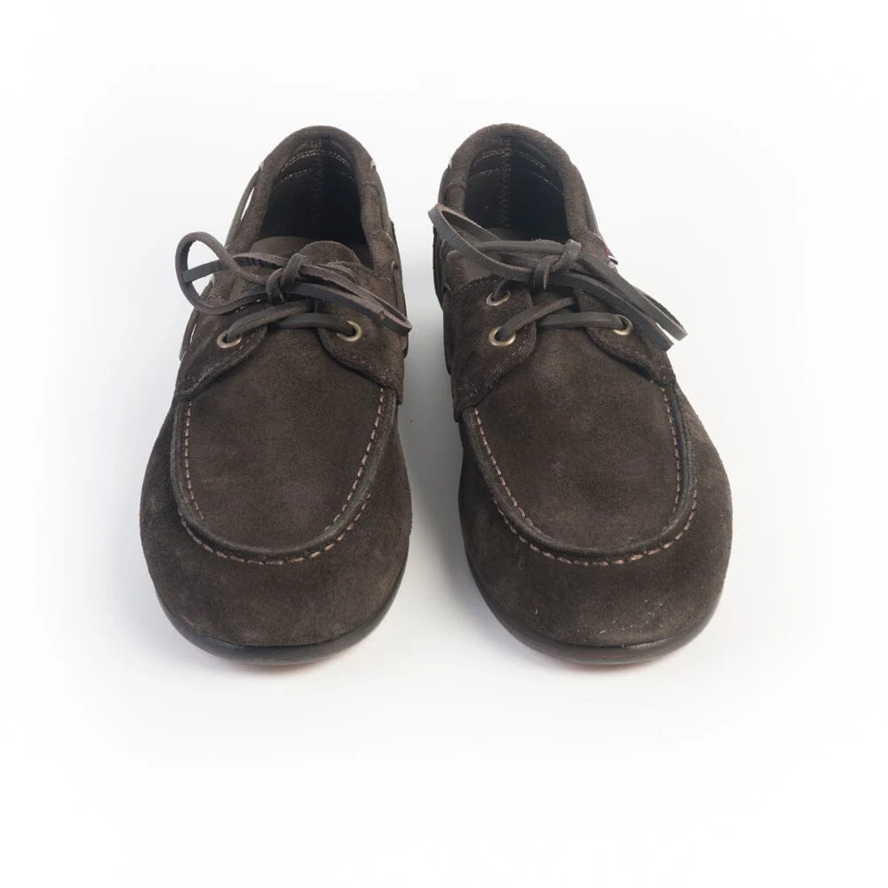 Scarpe modello barca Owen di Sebago con una silhouette elegante e sottile. Realizzate in pelle scamosciata di colore marrone scuro, con la migliore lavorazione artigianale. Creata per avere un look esclusivo e durare a lungo, รจ dotata di sistema di allacciatura a 360ยฐ con laccio in cuoio e suola in cuoio di colore beige.