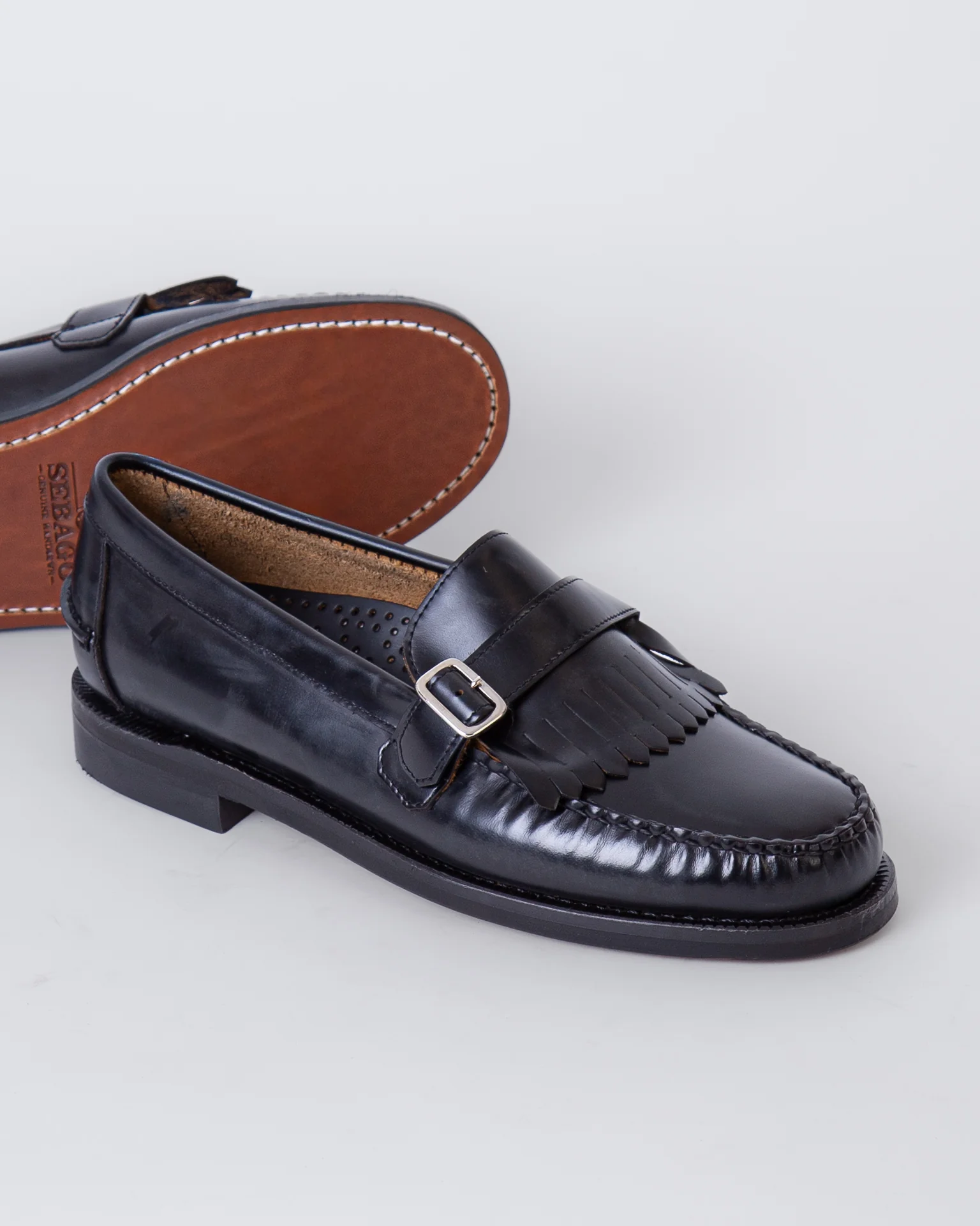 Sebago, mocassino uomo ALES 902 nero, con fibia. La scarpa scattata รจ una taglia 8 e mezzo