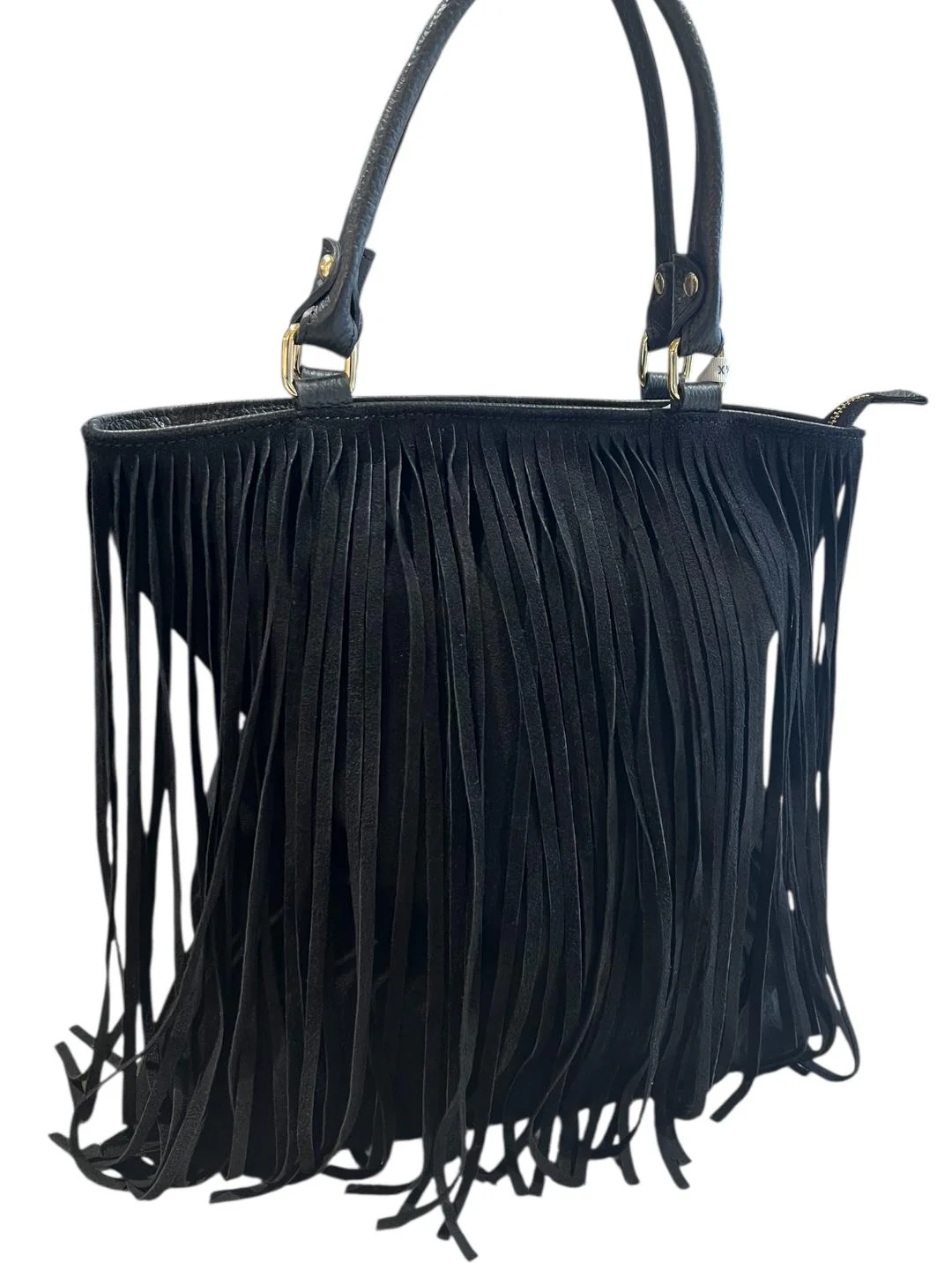Questa shopper con frange di tendenza unisce stile e funzionalitร . Spaziosa all’interno, permette di portare tutto l’essenziale con facilitร , mentre l’aggiunta della tracolla comoda garantisce praticitร e libertร di movimento durante la giornata. Perfetta per chi cerca un accessorio versatile senza rinunciare al design.