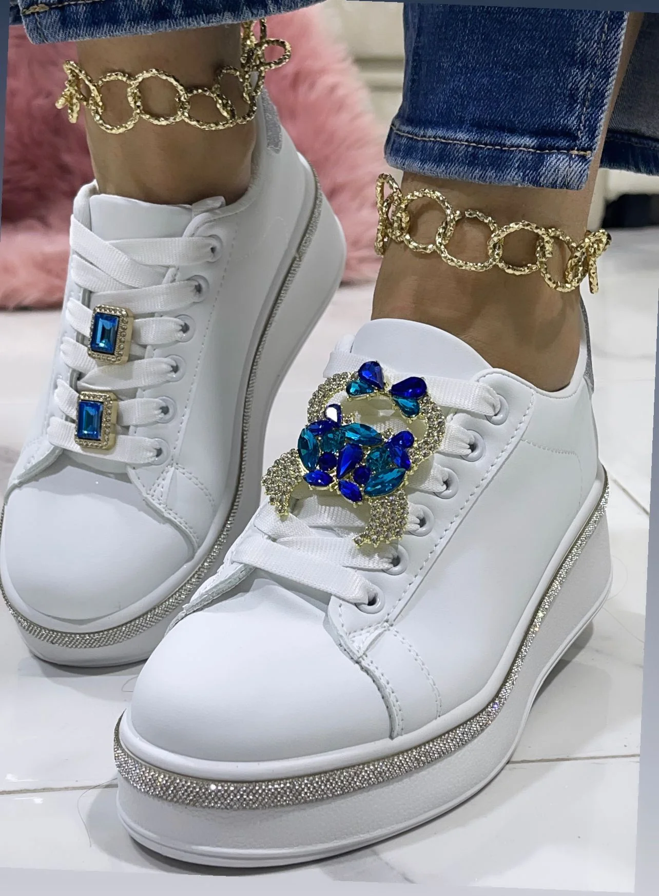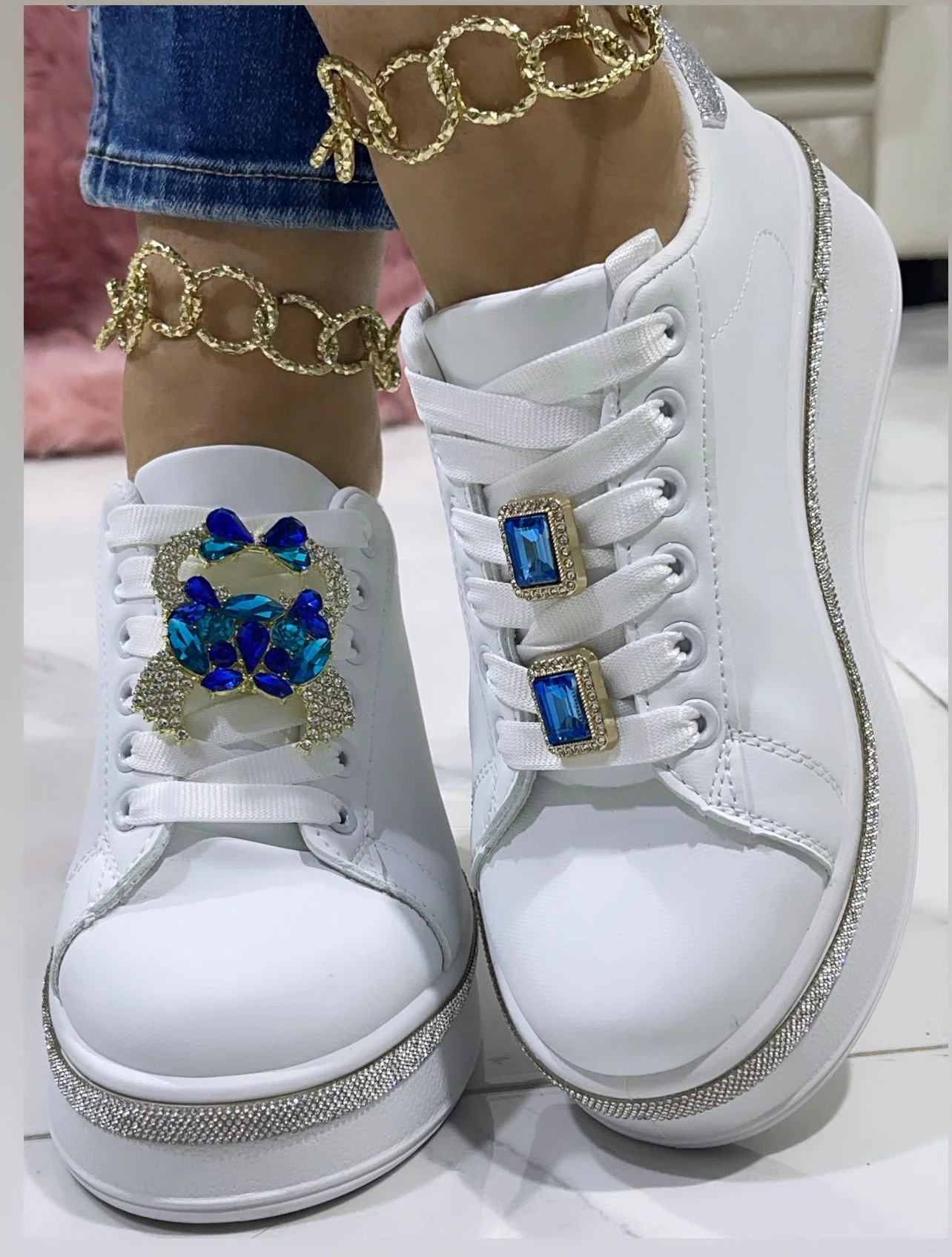 Le sneakers Barcellona sono perfette per chi cerca un look brillante. Con inserti argento e pietra blu, ti faranno risplendere!