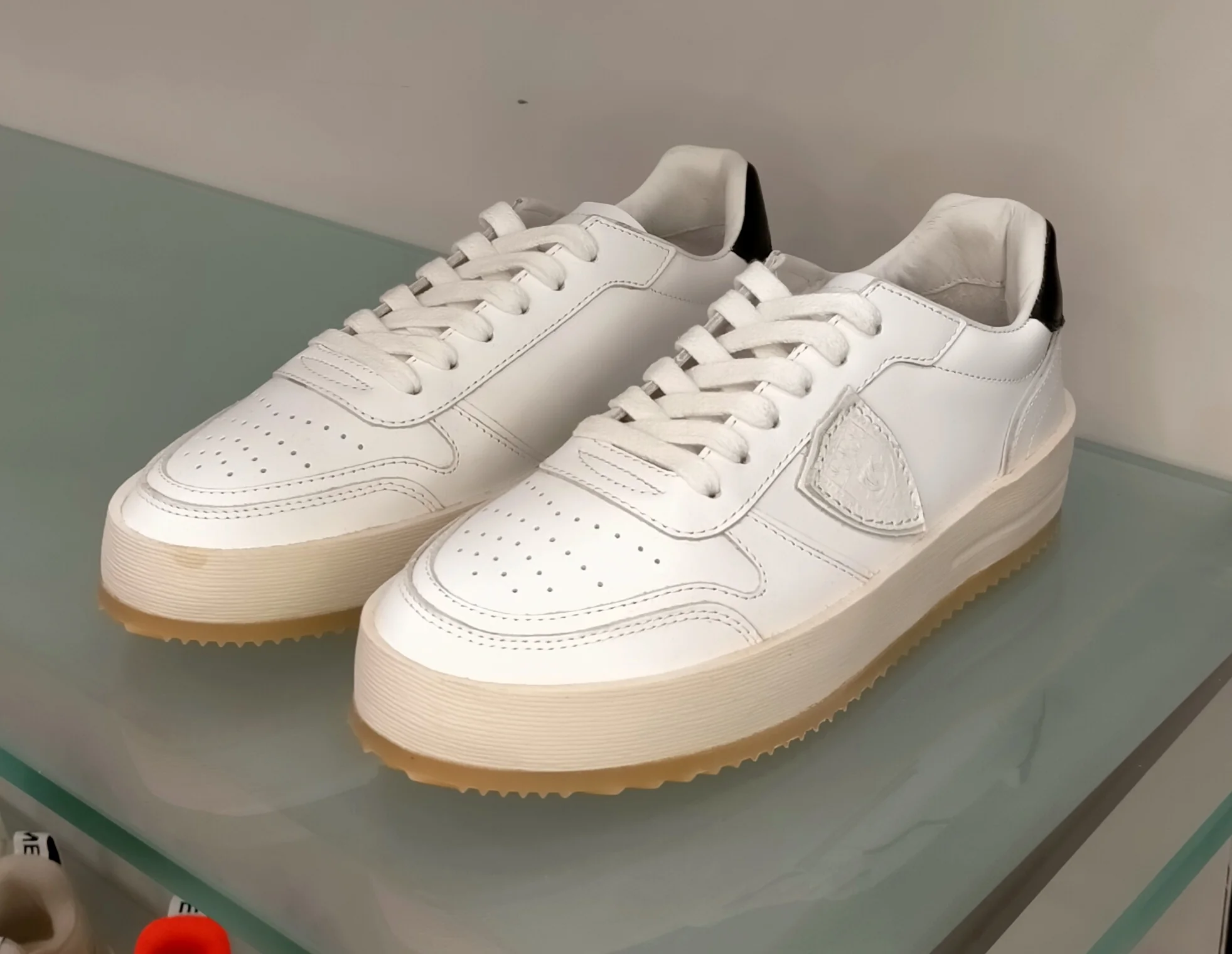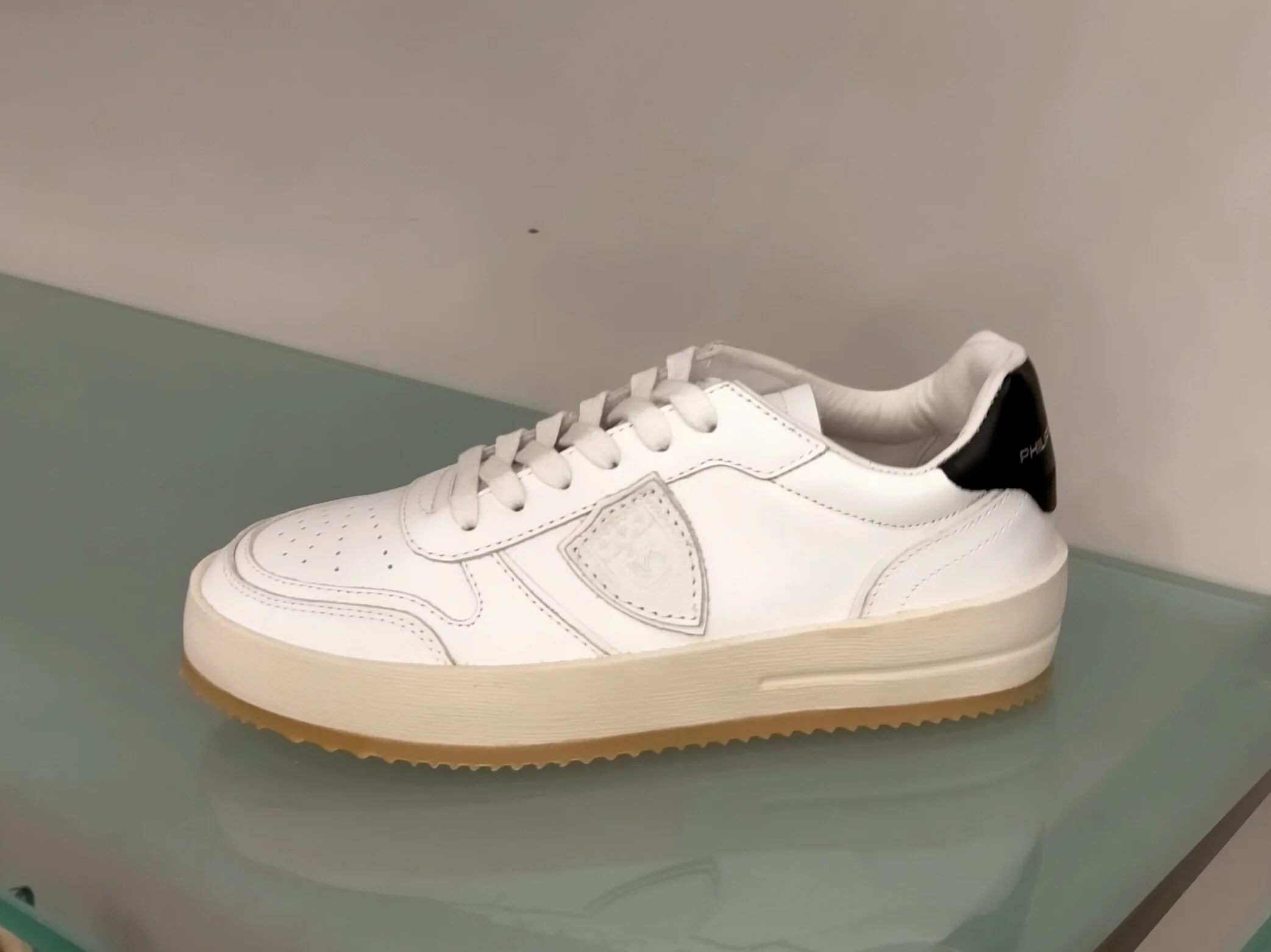 Sneakers PHILIPPE MODEL in pelle bianca, talloncino pelle nera