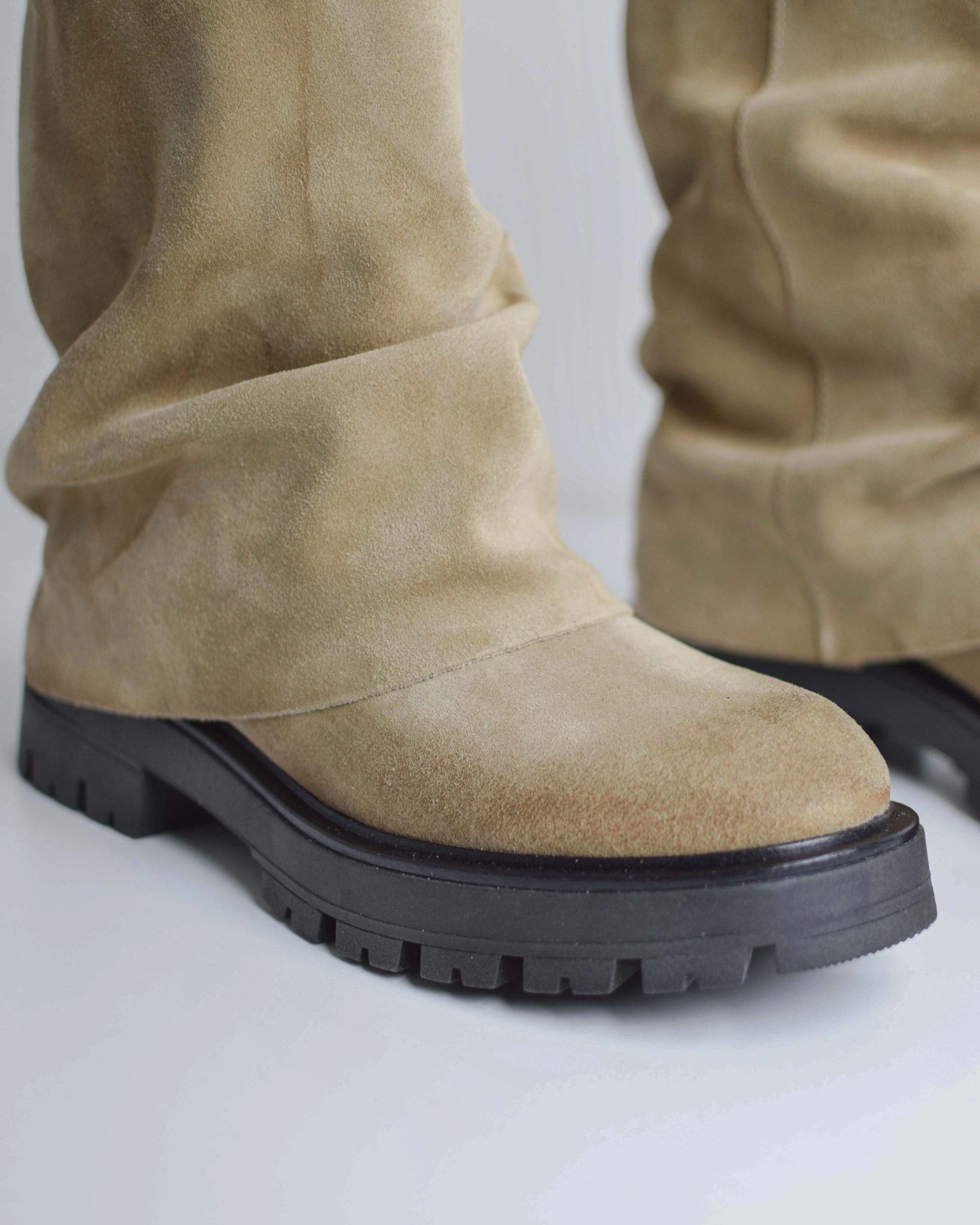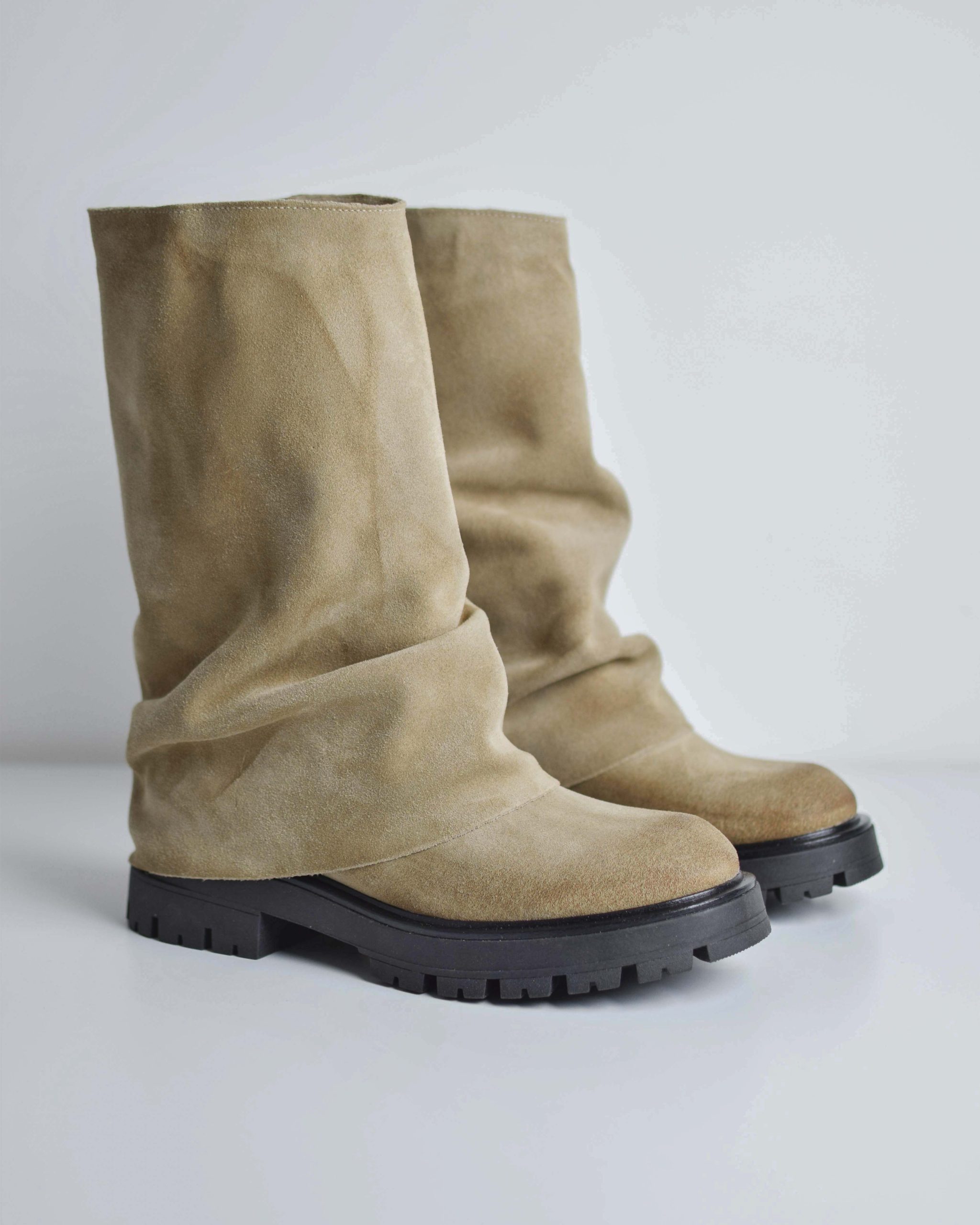 Stivaletto in pelle scamosciata marrone con risvolto Suola Track Altezza gambale 28 cm Vera pelle Produzione italiana