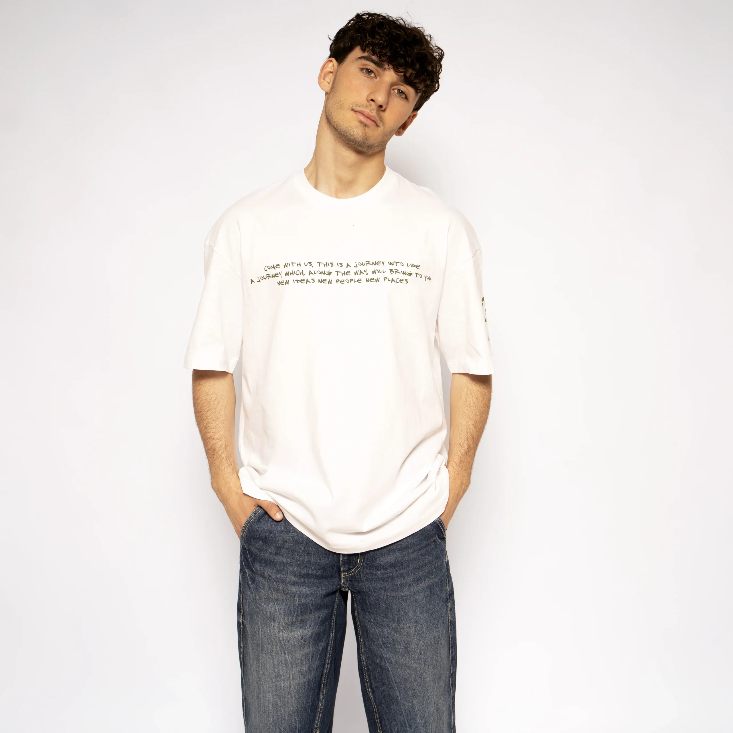 T-shirt Uomo White Green Oversize
