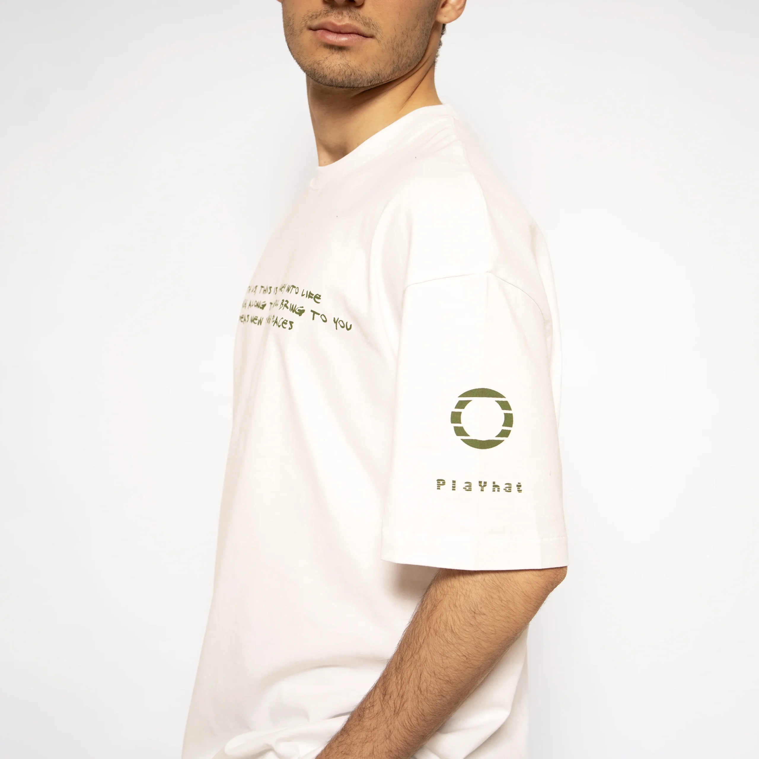 Scopri la T-shirt Uomo firmata Playhat, oversize in cotone biologico! Con un design ampio e comodo, questa maglietta combina comfort e audacia, diventando il punto di partenza di ogni look innovativo. Il colletto a costine e la stampa frontale, simbolo di creativitร e indipendenza, catturano l’essenza di un’energia che non conosce confini. Il logo sulla manica, discreto ma riconoscibile, rappresenta la forza di una comunitร che crede nella potenza del cambiamento e nell’unione di anime che, pur sembrando diverse, si dirigono verso un obiettivo comune: creare qualcosa di straordinario e irripetibile. Realizzata in cotone biologico di alta qualitร , questa maglietta รจ il manifesto di un movimento che celebra il presente e il futuro con coraggio e originalitร .