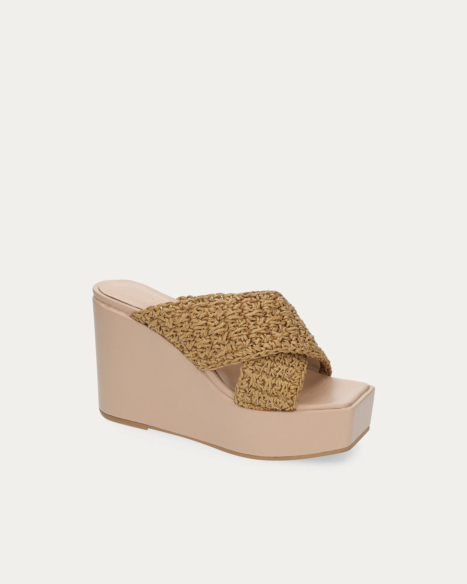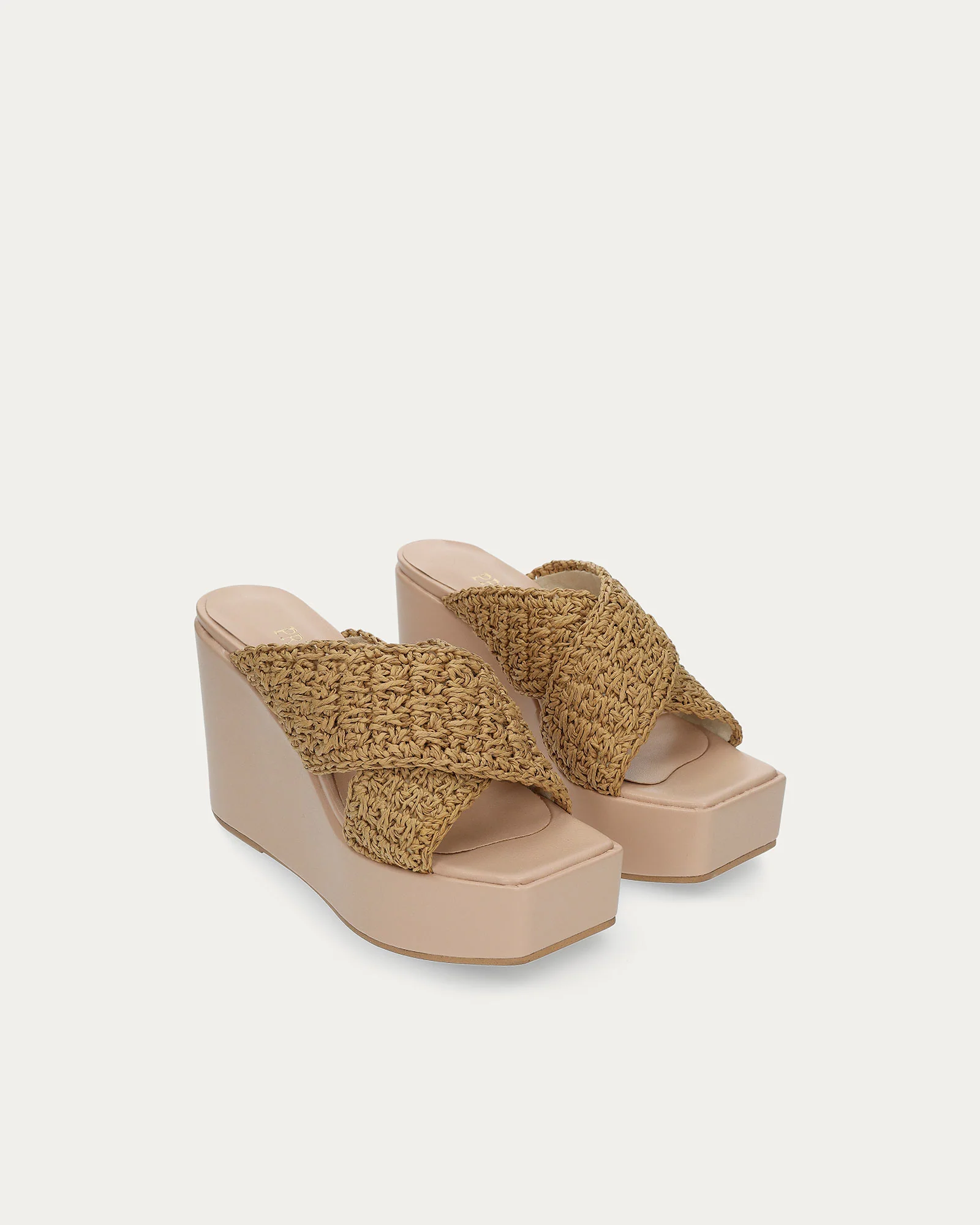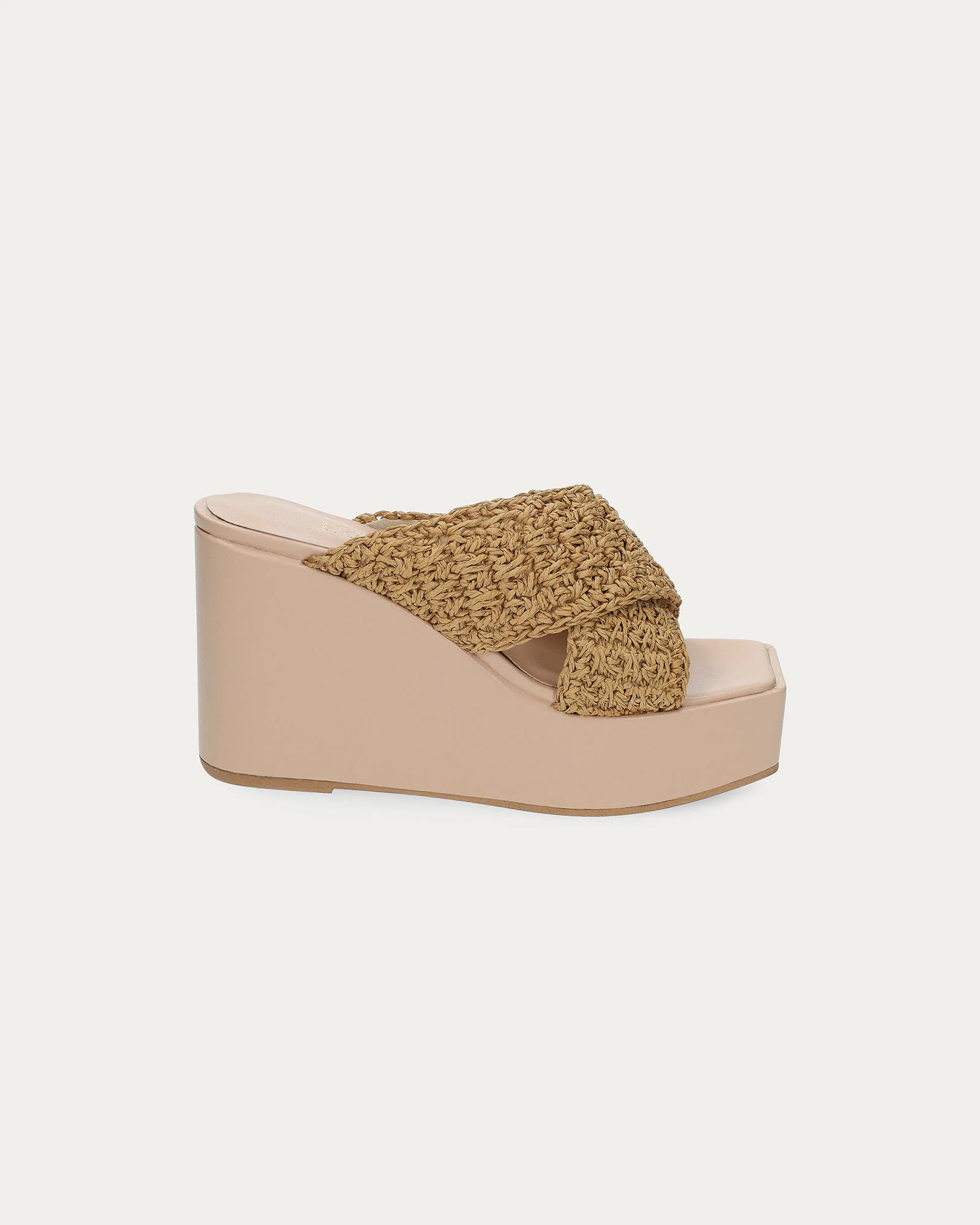 Tacchi con intreccio frontale in rafia naturale.