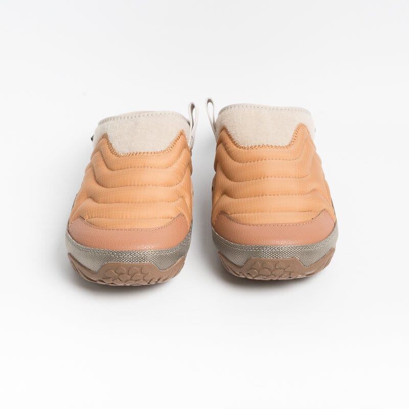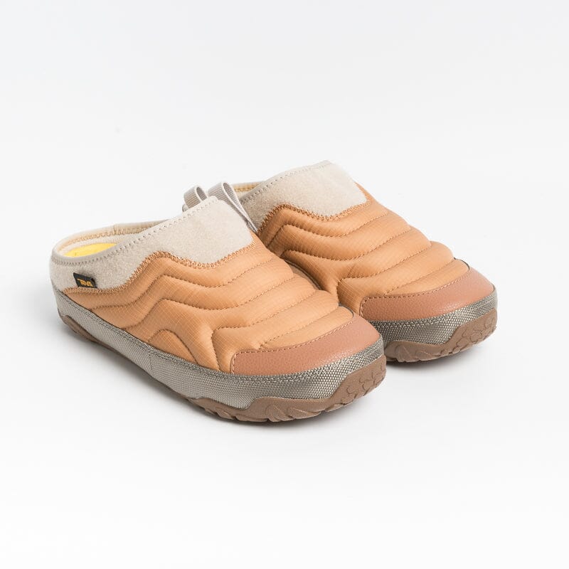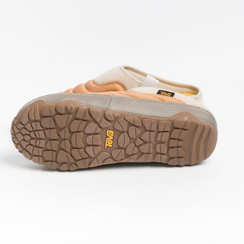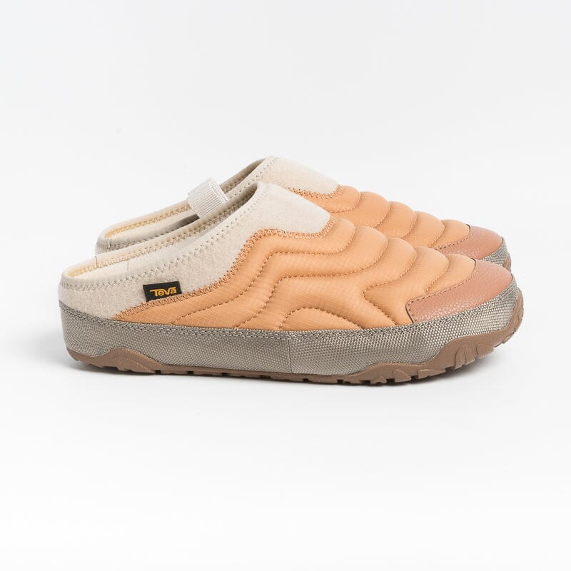 Sleeper di Teva, realizzato in tessuto trapuntato nel colore pesca con profili in poliestere riciclato al 100% di colore beige simile alla lana; profilo sul bordo della suola di colore grigio. Tessuto trattato con rivestimento protettivo RAPID RESIST che consente all’acqua di scivolare via. Passante laterale per una calzata facilitatata e per agganciarlo ad uno zaino. Plantare imbottito in schiuma Teva ULTRA-COMF di altezza 3 cm. Suola in gomma riciclata al 50%.