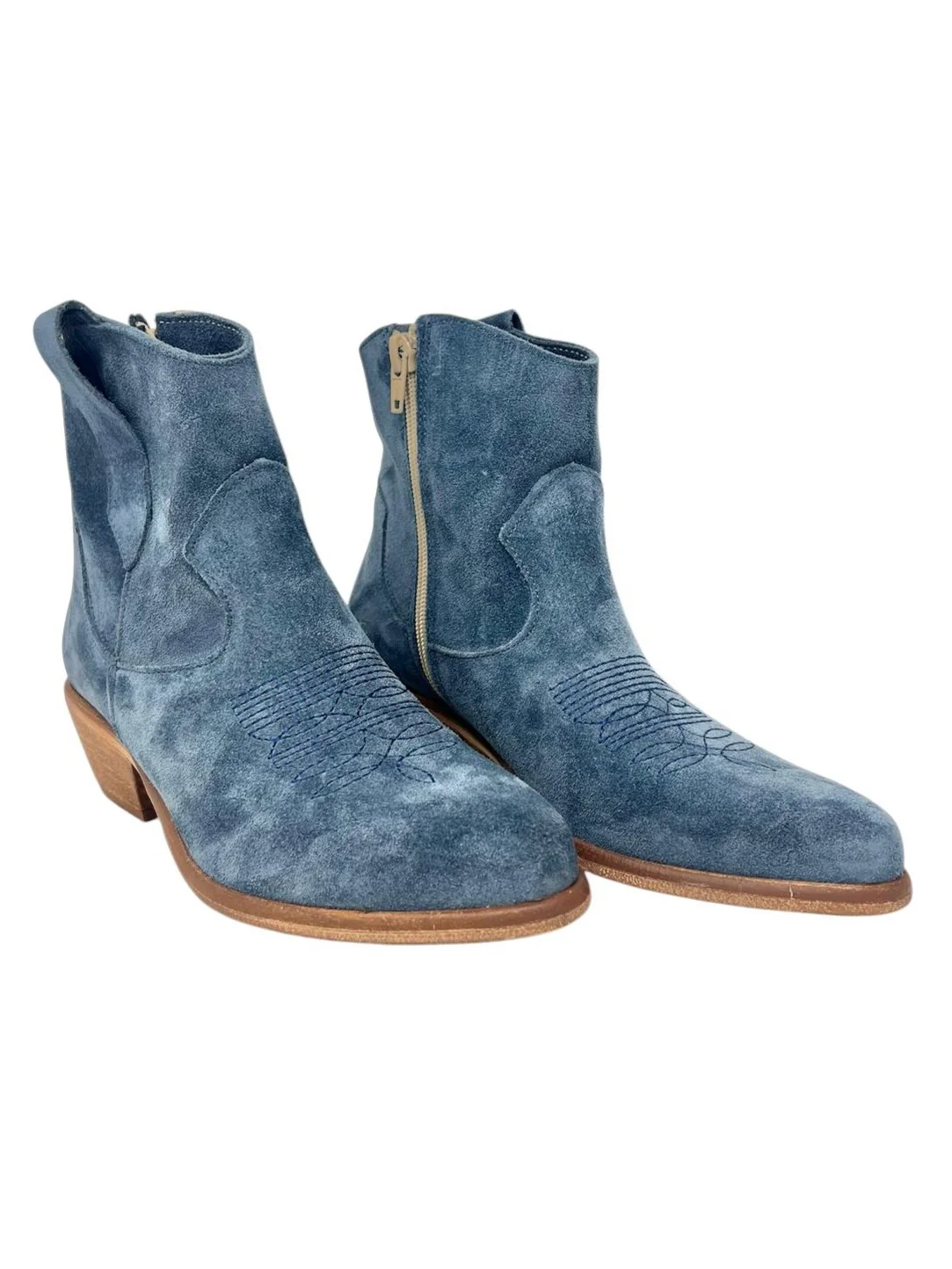 Texani in jeans con ricamo camoscio – 2083