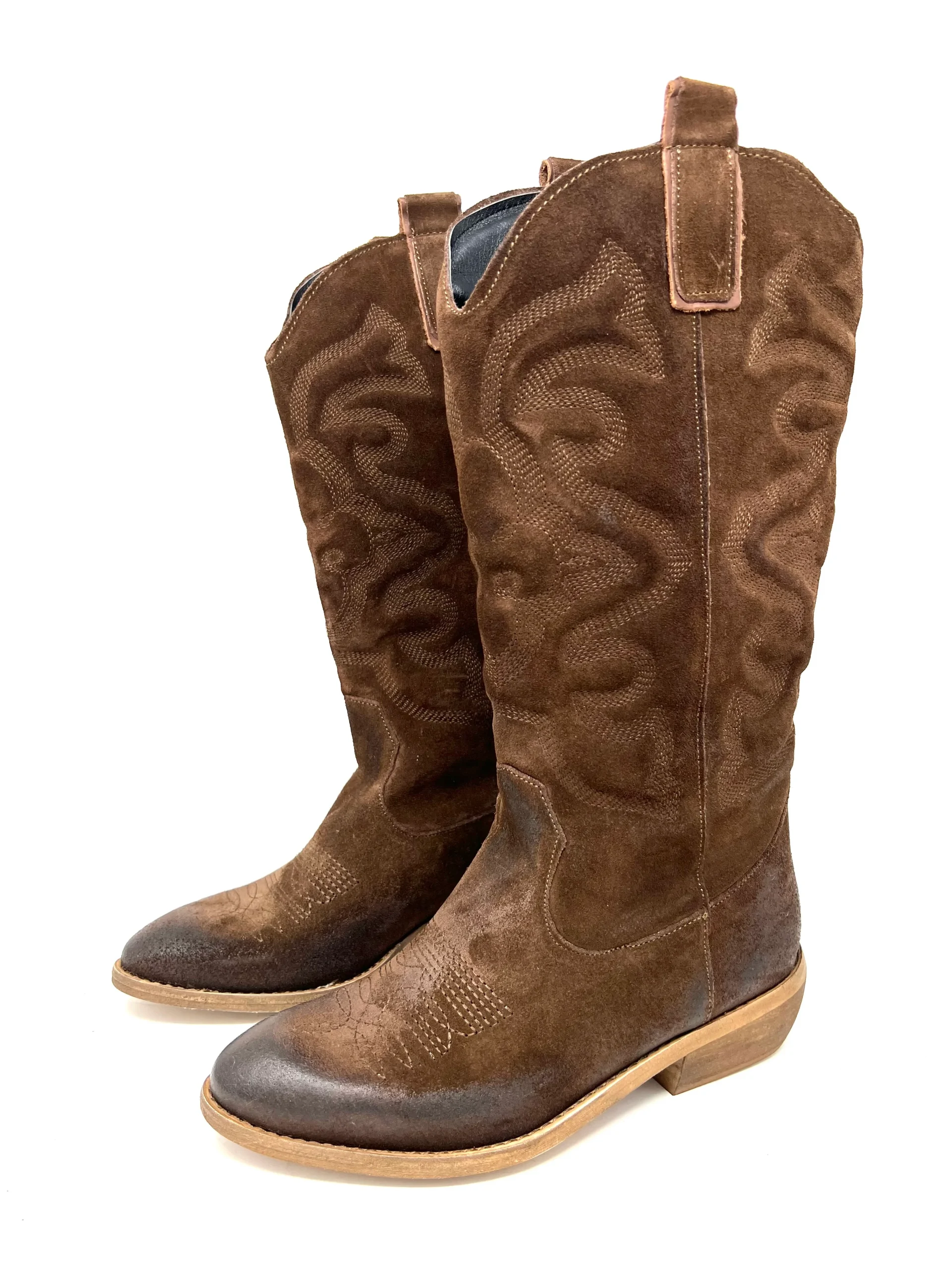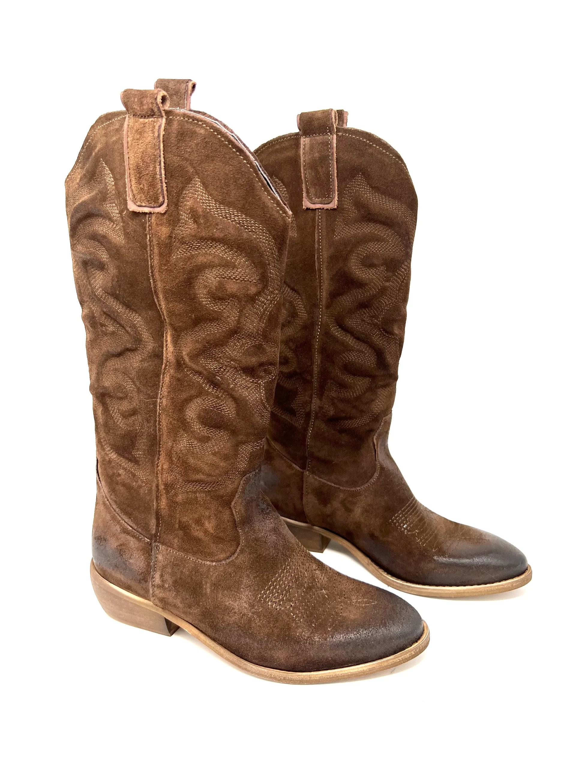 Texano 3/4 gambale ricamato cacao – MECNATM