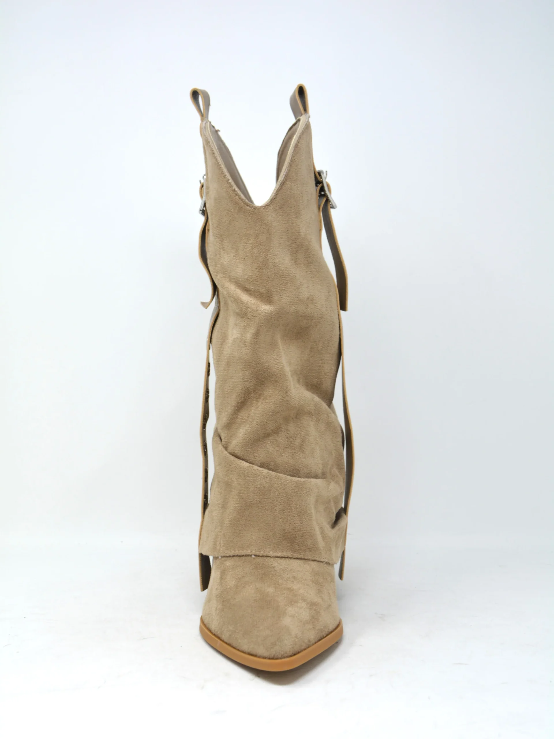 Questo texano in morbido camoscio beige sorprende con un risvolto che avvolge anche il tacco, aggiungendo un tocco di personalitร  al tuo look. La cinturina decorativa, impreziosita da piccole borchie รจ perfetta per chi ama distinguersi. Comodo e originale, รจ lโ€™ideale per dare un twist giocoso a ogni outfit.
