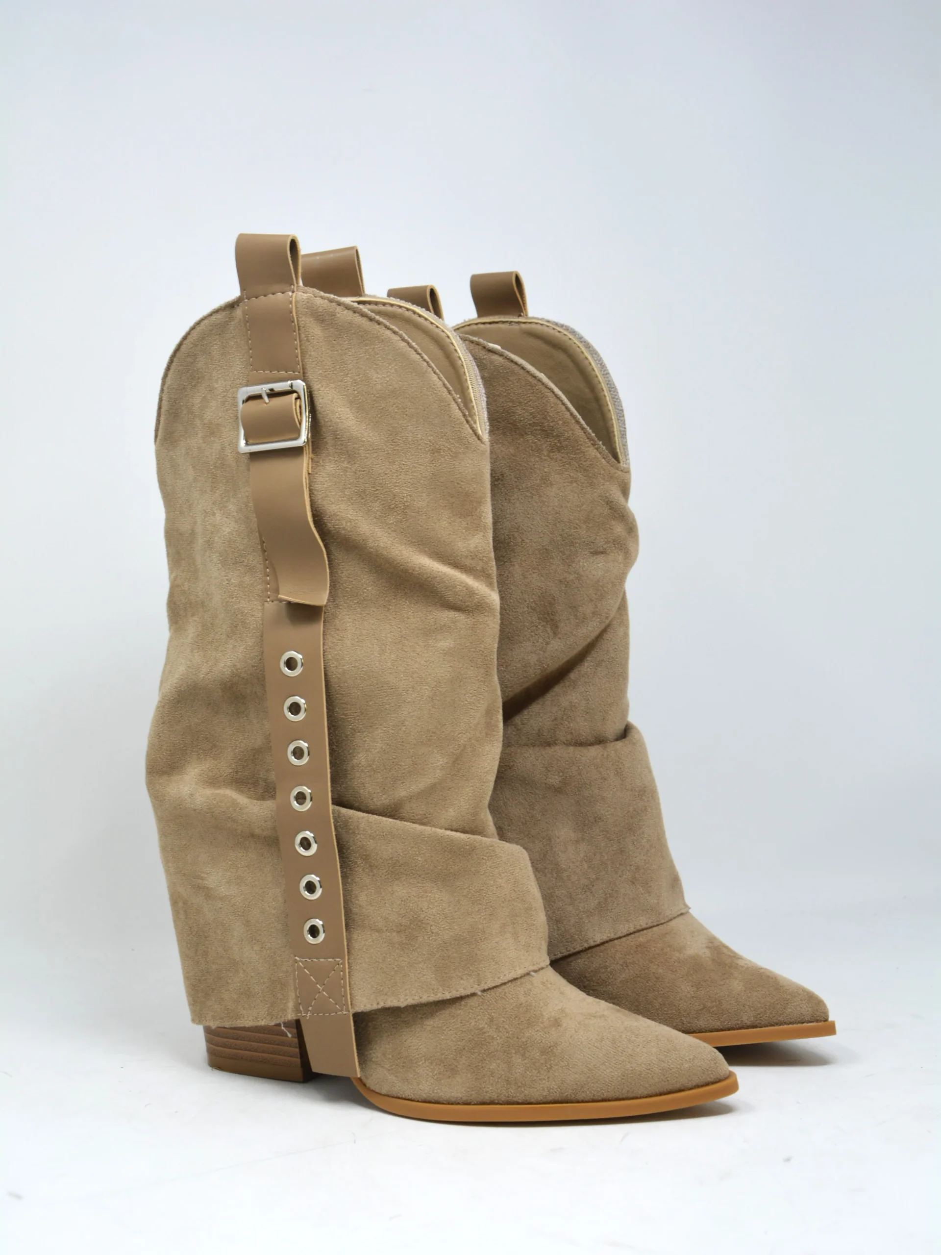 Texano basso con risvolto beige -A9972