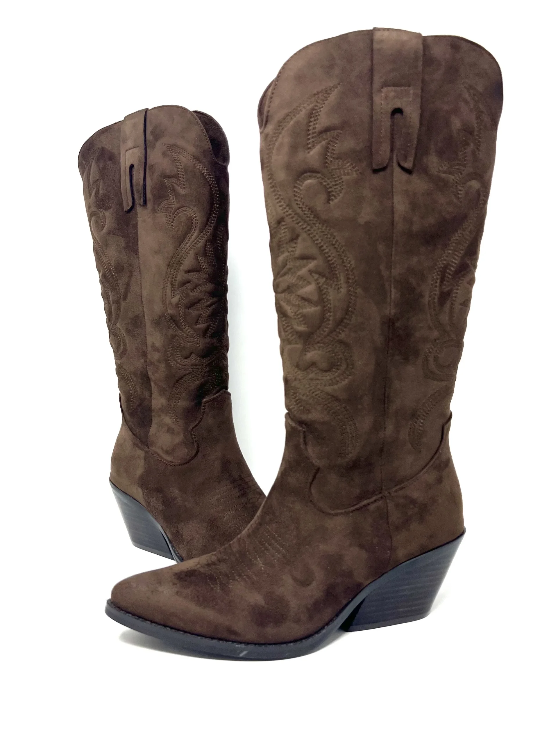 I Texano con ricami caffè in camoscio offrono una calzata regolare per garantire comfort tutto il giorno. Il design elegante con dettagli ricamati valorizza ogni outfit, mentre il materiale in camoscio assicura morbidezza e durata nel tempo. Perfetti per chi cerca stile e praticità in un unico capo. Tomaia: Eco camoscio