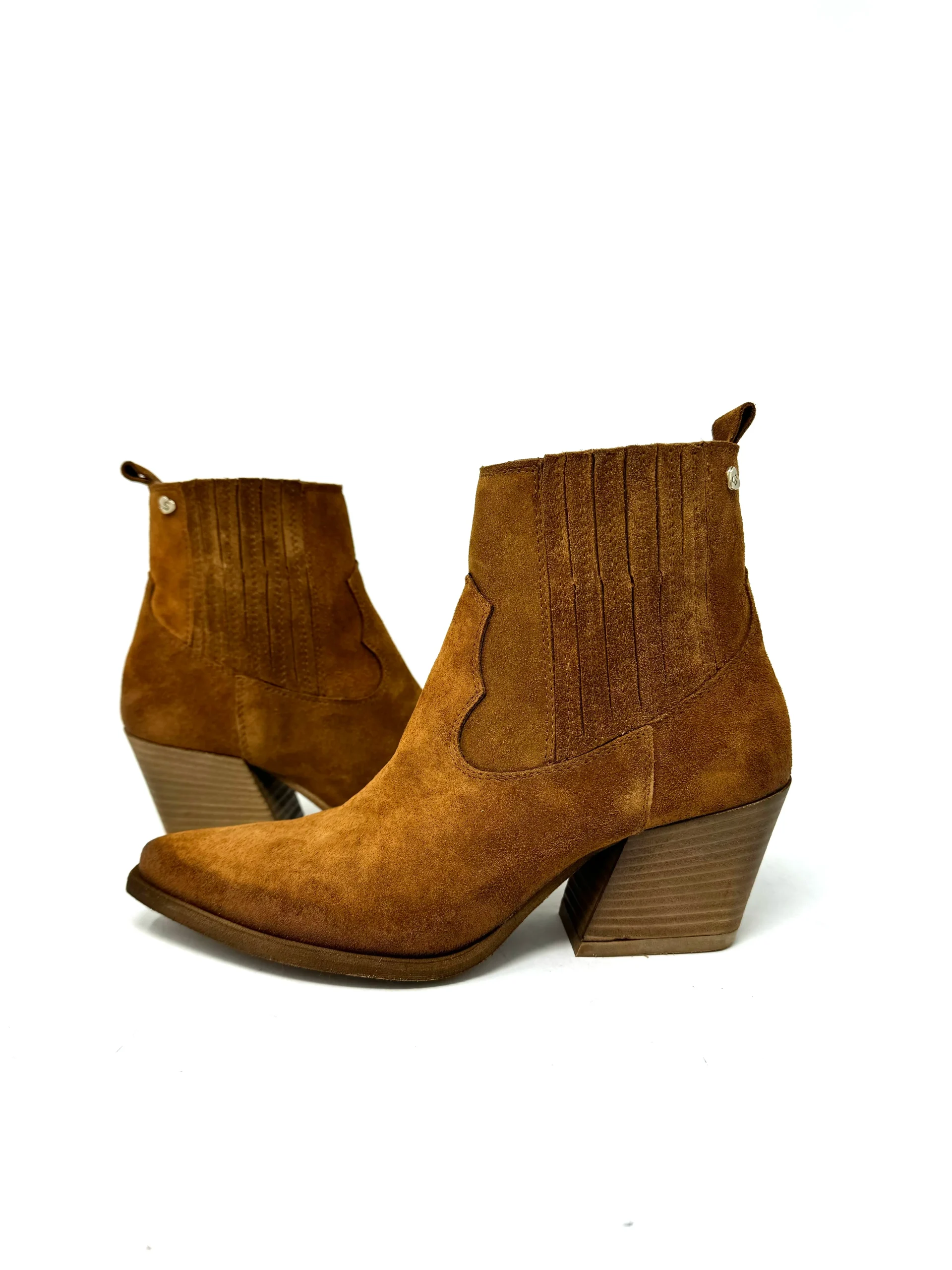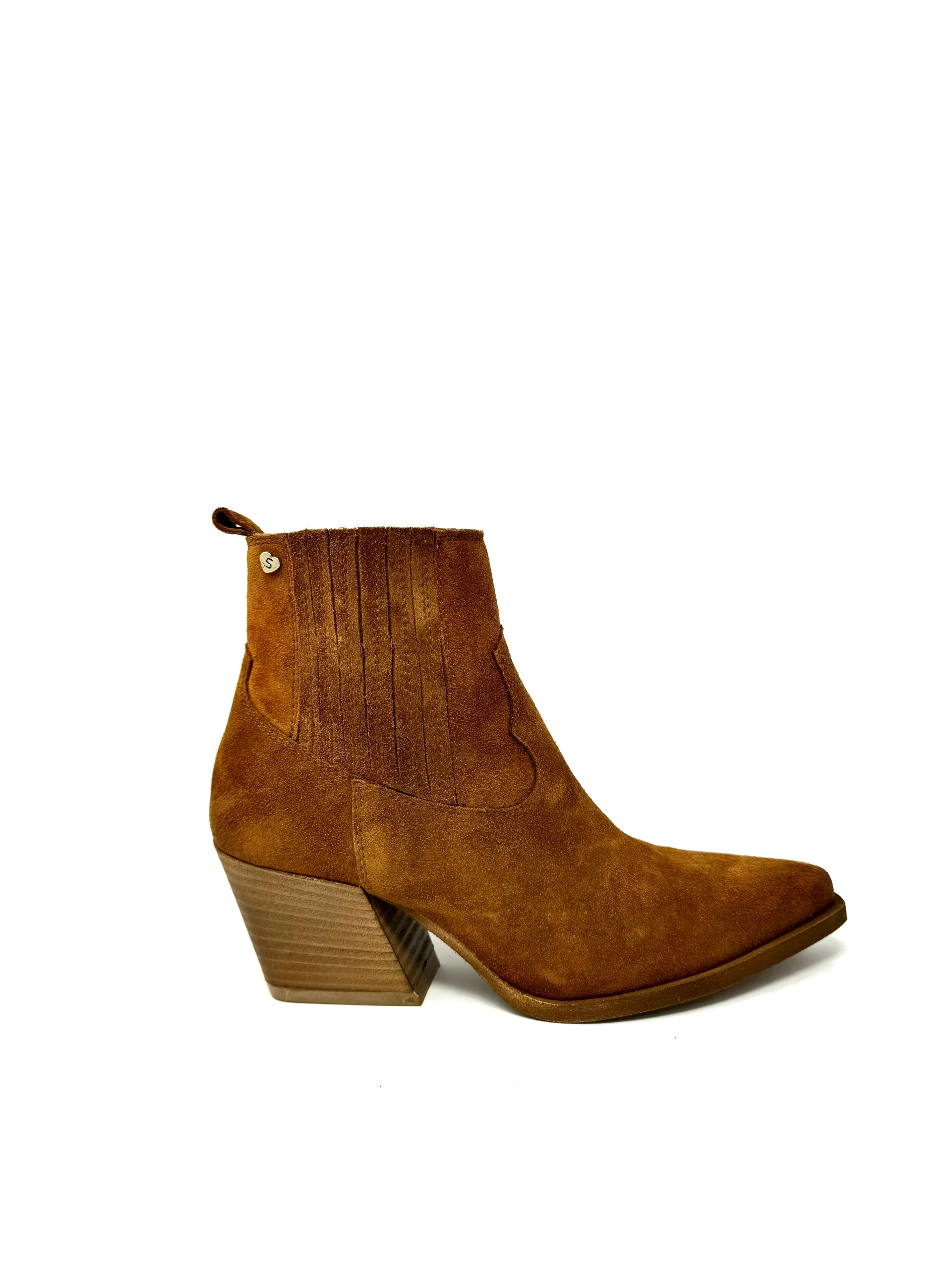 Texano tronchetto in camoscio con pratici elastici laterali e colorazione bruciata. Ideale per un look casual ed elegante, offre una calzata comoda e flessibile. Stile e funzionalitร si uniscono in questo prodotto perfetto per ogni occasione. Tacco a cono, calzata regolare, vera pelle made in Italy.
