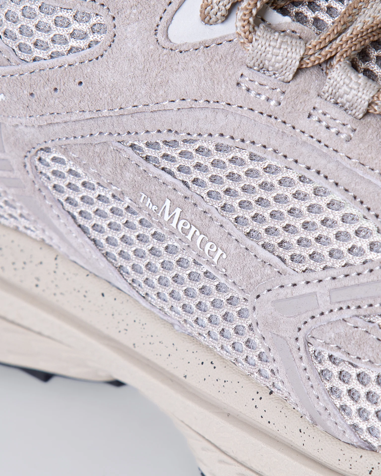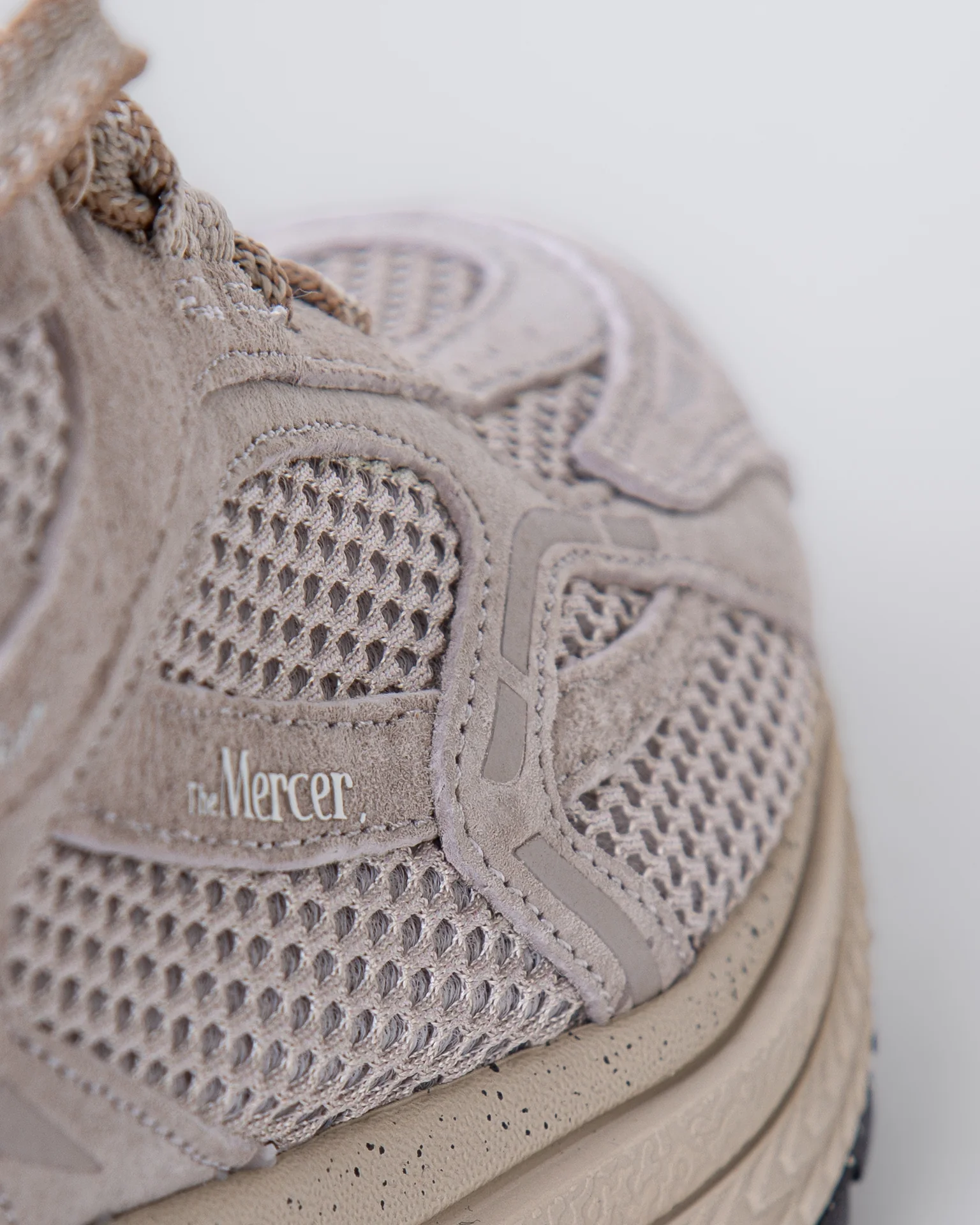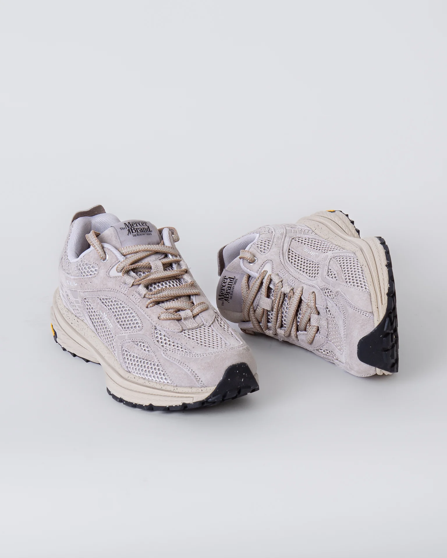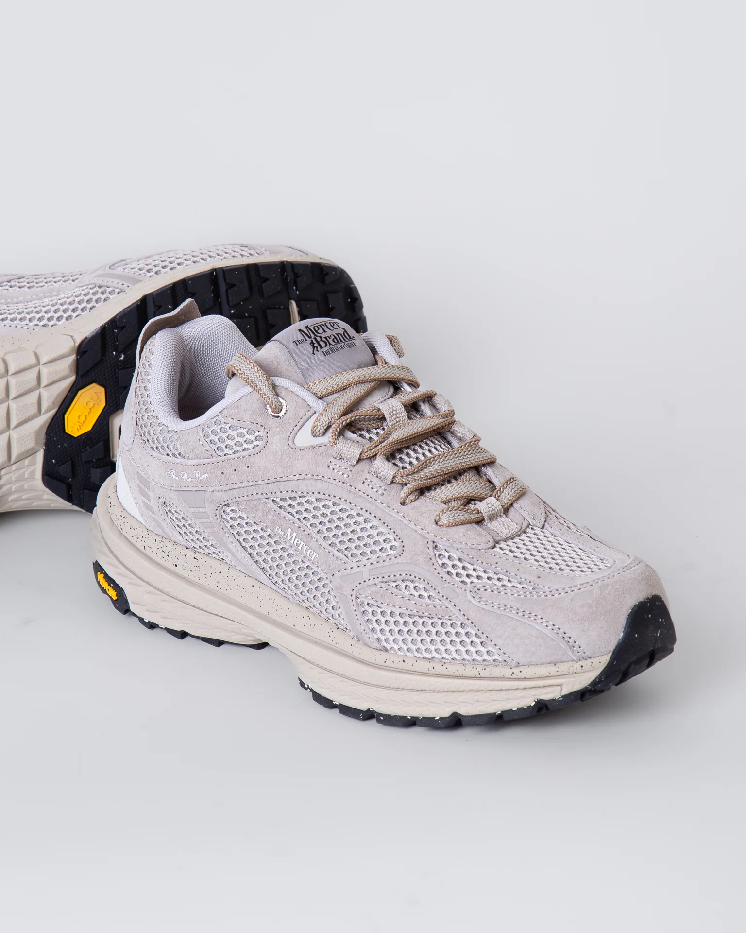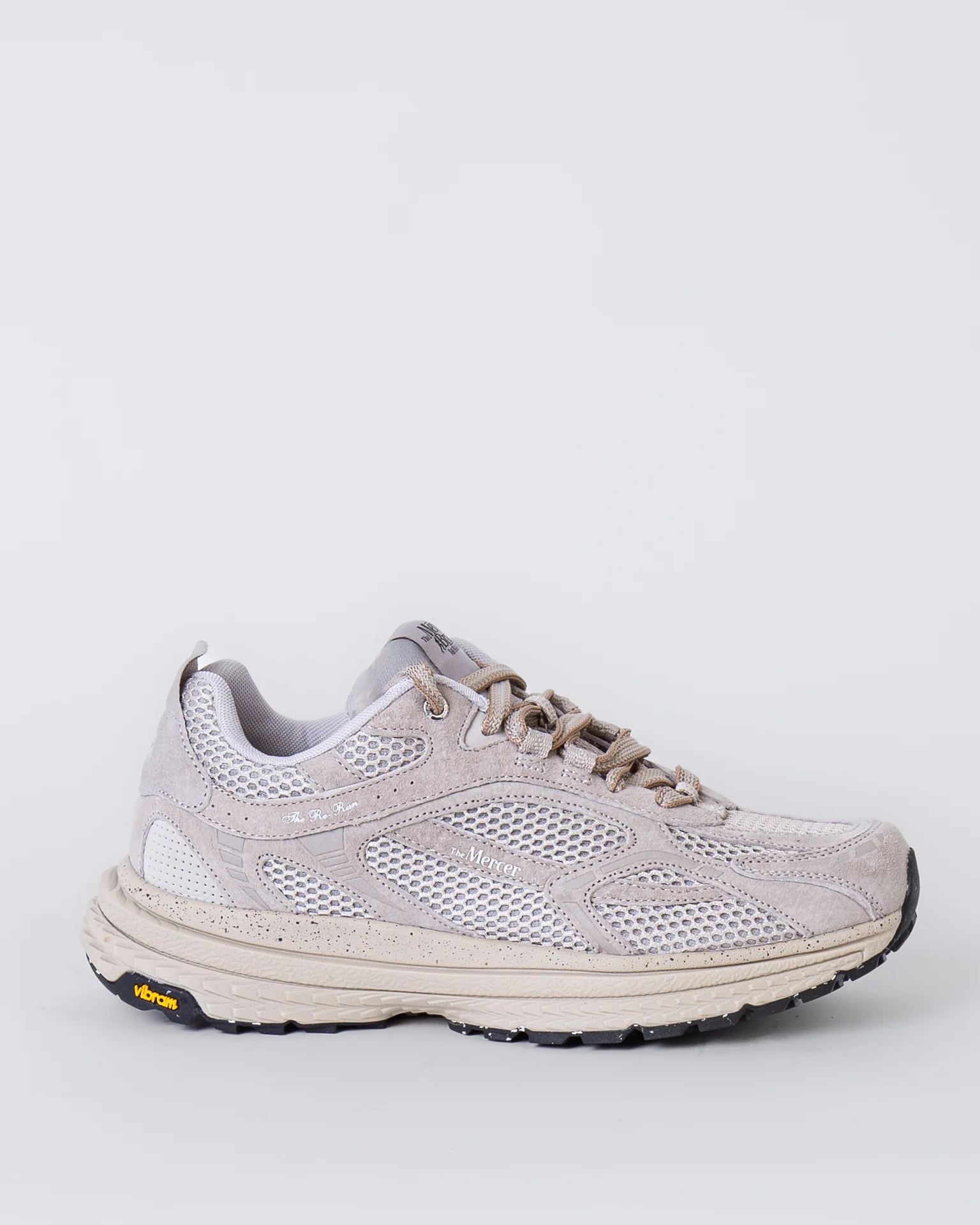 The Mercer Brand, sneakers uomo ME253016 103 sabbia, modello re-run, suola in vibram, tomaia con inserti a rete. La scarpa scattata รจ una taglia 42