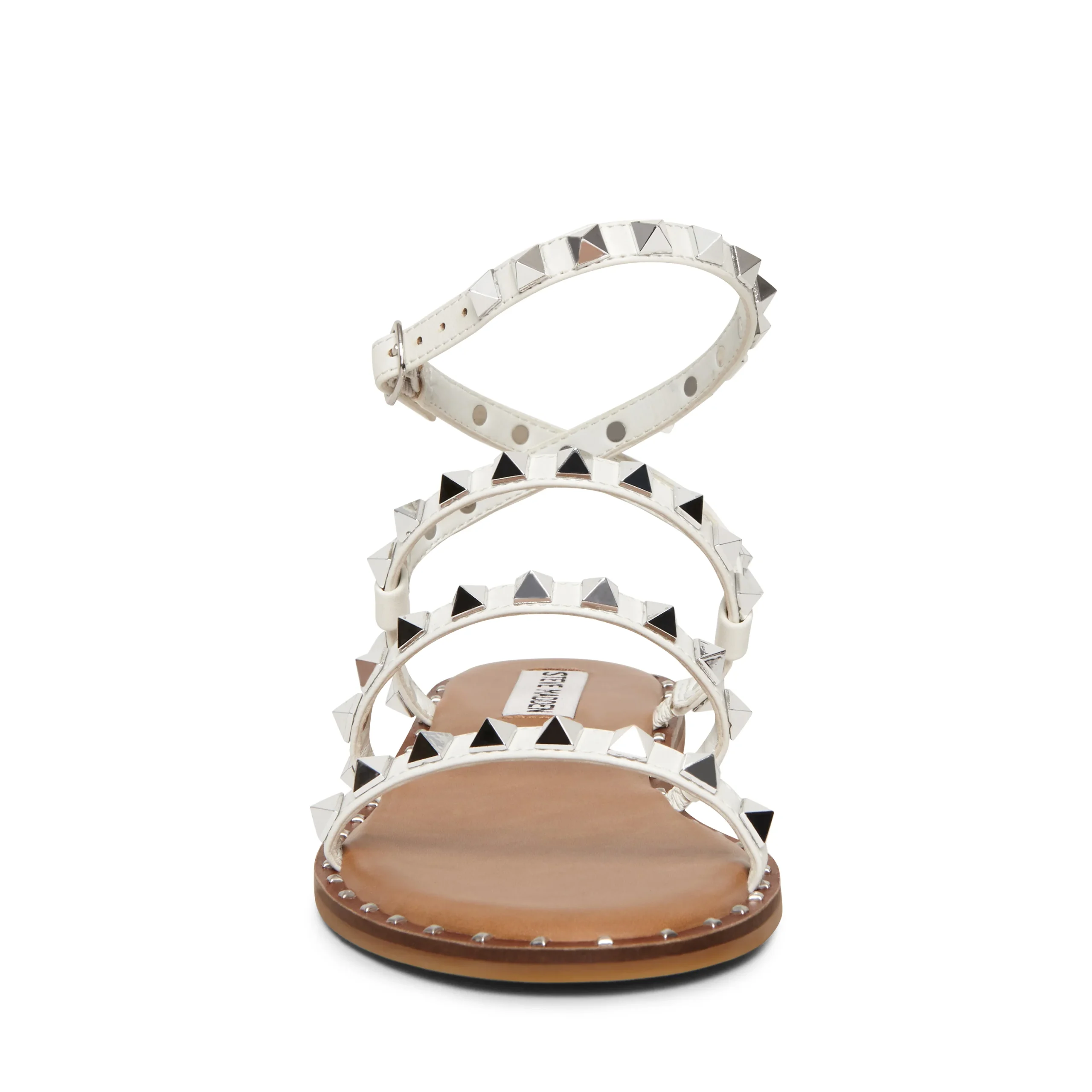 Incrociando delicati cinturini skinny con spigolose borchie a piramide in metallo, il sandalo TRAVEL รจ allo stesso tempo feroce e femminile. Abbinalo a un vestito lungo drappeggiato per un look degno di una dea. Tomaia sintetica Borchie decorative Cinturino alla caviglia Suola sintetica