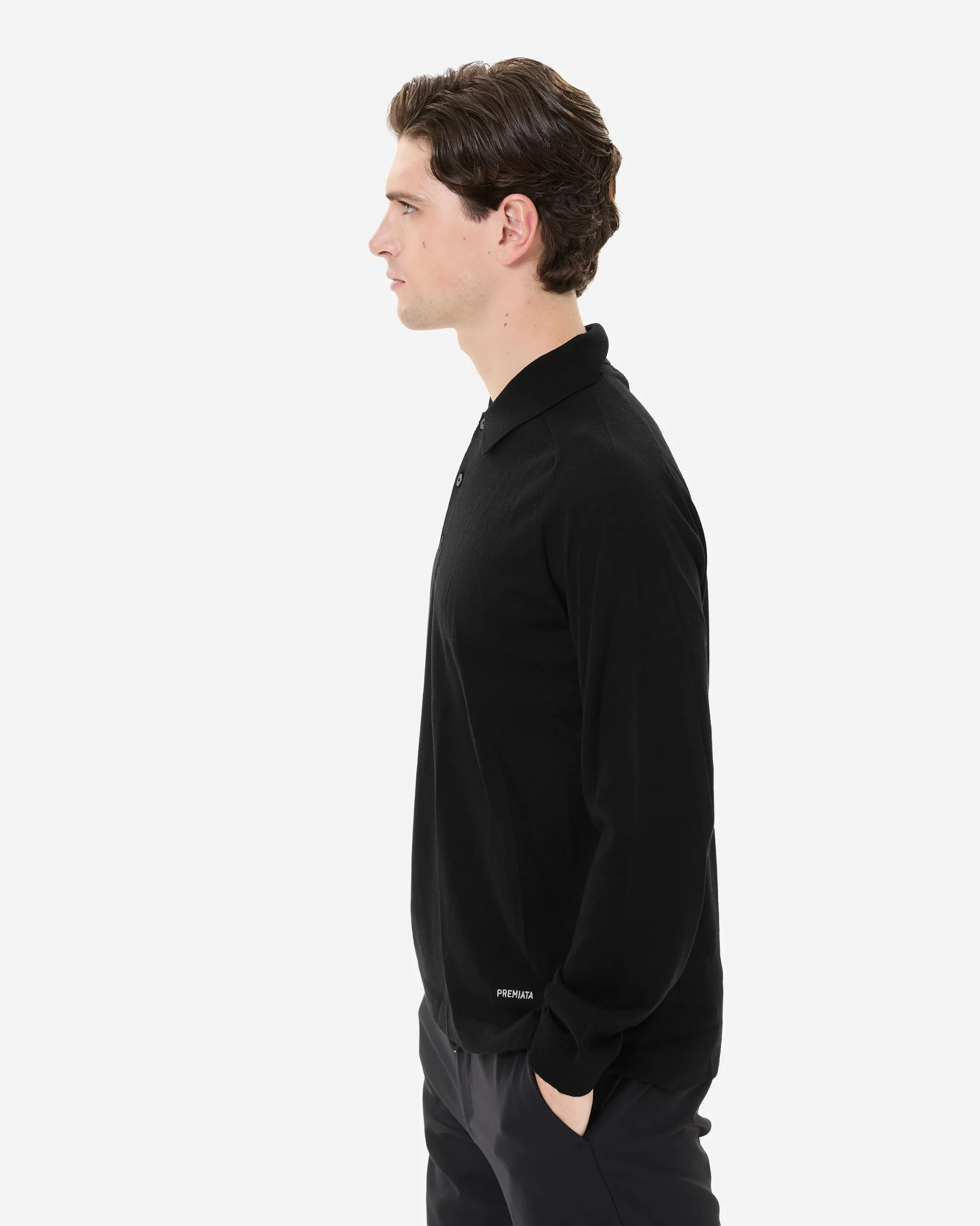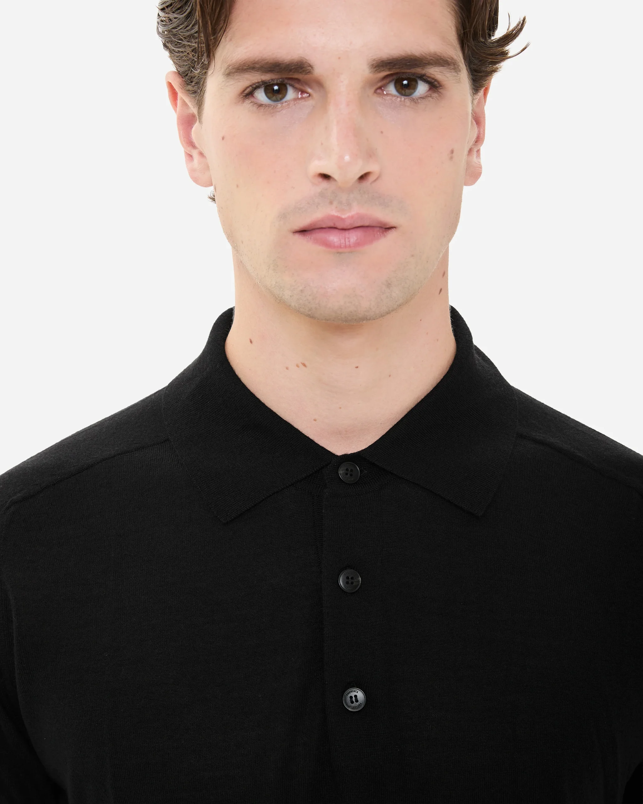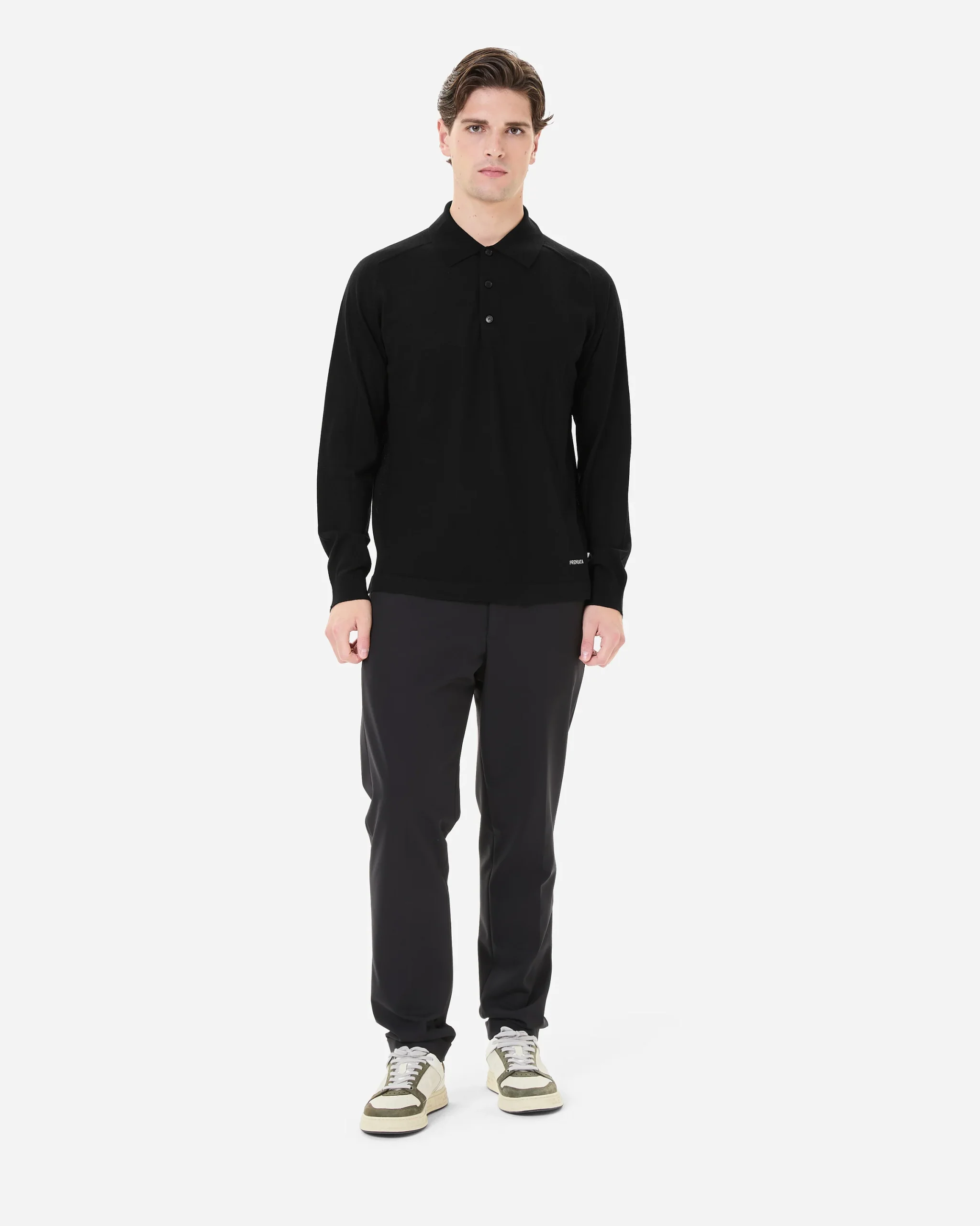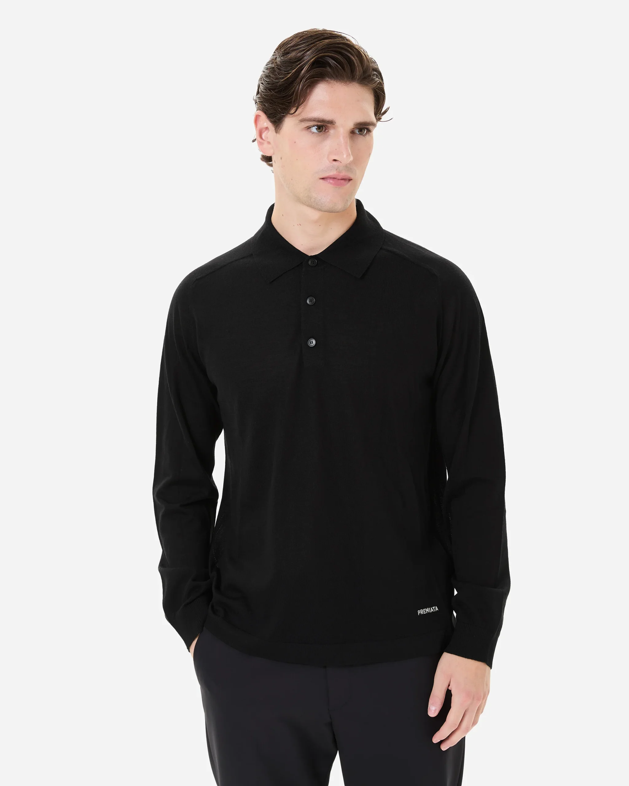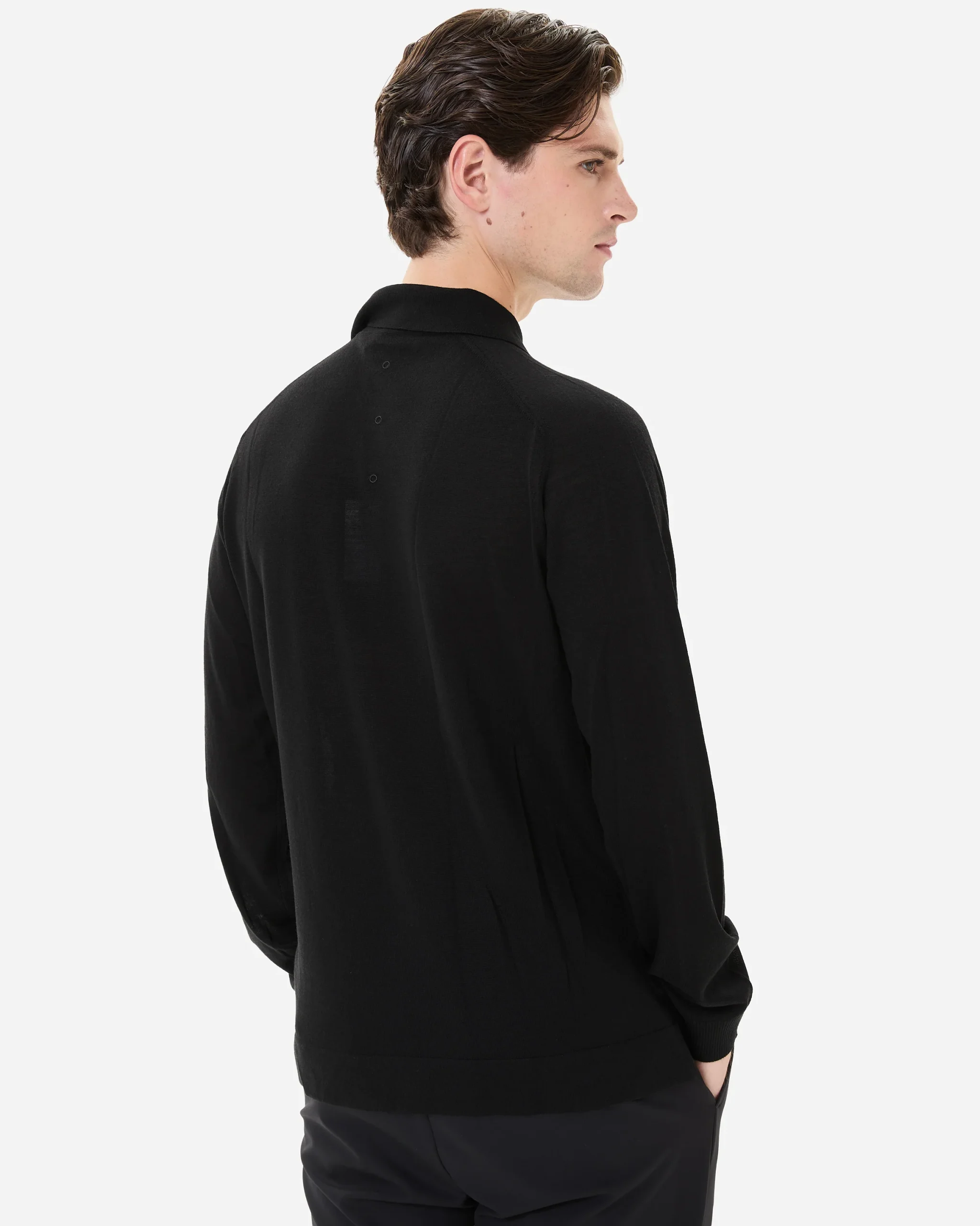 Wool and silk long sleeve polo shirt